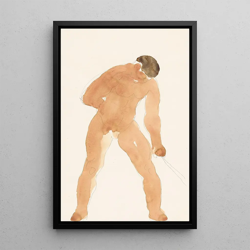 L'œuvre "Homme nu debout" af Reijer Stolk er en slående kunsttryk, der fremhæver skønheden i den menneskelige krop. Kompositionen fremviser den slanke silhuet af modellen, fanget i en naturlig og dynamisk positur. De varme, jordnære farver kombineret med fine skygger skaber en atmosfære, der er både intim og eftertænksom. Stolk's teknik, der kombinerer præcist tegning med en ekspressiv malerstil, giver liv til dette kunsttryk og inviterer betragteren til at værdsætte den menneskelige formens ynde og elegance.