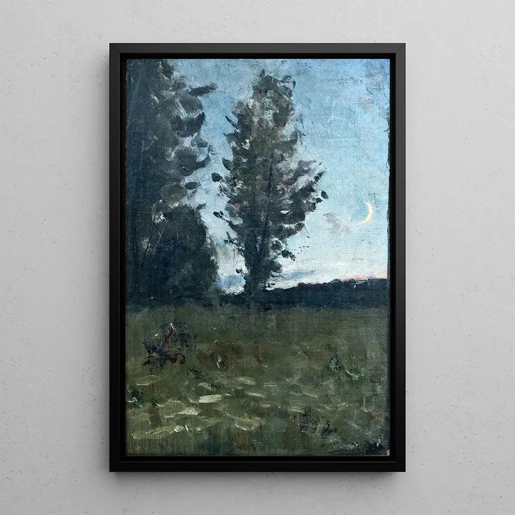 Reproduktionen af "Landskab ved måneskin" er et ideelt valg for dem, der ønsker at tilføre et strejf af ro til deres indretning. Uanset om det er i en stue, et kontor eller et soveværelse, vil dette kunsttryk skabe en afslappende og inspirerende atmosfære. Dets trykkvalitet sikrer en bemærkelsesværdig trofasthed til de originale værker, hvilket gør det muligt at værdsætte hver nuance og detalje. Ved at integrere dette lærred i din indretning giver du dit rum en kunstnerisk dimension, der inviterer til drømme og flugt, samtidig med at du hylder en anerkendt kunstners talent.
