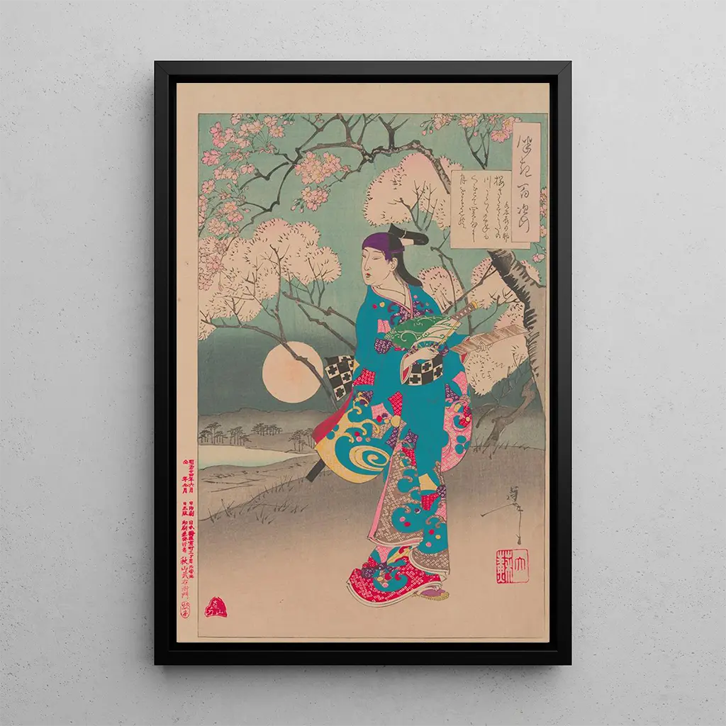 Lune sur la rivière Sumida : et refleksion af den flygtige skønhed Den kunsttryk af Lune sur la rivière Sumida transporterer os til en natlig scene, hvor månens lys danser på de rolige vande i floden. Tsukioka Yoshitoshi, med sin mesterlige ukiyo-e teknik, formår at fange magien i dette flygtige øjeblik. De sølv- og blålige nuancer skaber en fredelig atmosfære, mens detaljerne i bådene og de omkringliggende landskaber tilføjer dybde til kompositionen. Dette værk fremkalder den flygtige skønhed i naturen og inviterer betragteren til at beundre den japanske nats fred. Tsukioka Yoshitoshi : en pioner inden for japansk kunstnerisk fornyelse Tsukioka Yoshitoshi, aktiv i anden halvdel af det XIX. århundrede, er anerkendt som en af de sidste store mestre af ukiyo-e. Hans kunstværk skiller sig ud ved en innovativ tilgang, der blander tradition og samtidige påvirkninger. På et tidspunkt hvor Japan åbnede sig mod verden, formåede Yoshitoshi at fange de sociale forandringer, samtidig med at han bevarede essensen af japansk kunst. Lune sur la rivière Sumida illustrerer perfekt hans talent for at skildre scener fra dagligdagen med poetisk følsomhed, hvilket gør ham til en uundværlig figur i japansk kunsthistorie. En dekorativ erhvervelse med mange fordele Den kunsttryk af Lune sur la rivière Sumida er en værdifuld tilføjelse til din indretning, uanset om den er moderne eller traditionel. Dette lærred, med sin enestående trykkvalitet, tilbyder en bemærkelsesværdig trofasthed over for nuancer og detaljer i det originale værk. Ved at udstille den i din stue, kontor eller soveværelse, tilføjer du et strejf af elegance og ro til dit rum. Dette lærred, både æstetisk og stemningsfuldt, vil fange dine gæsters opmærksomhed og berige dit miljø med en fredelig og kontemplativ atmosfære.