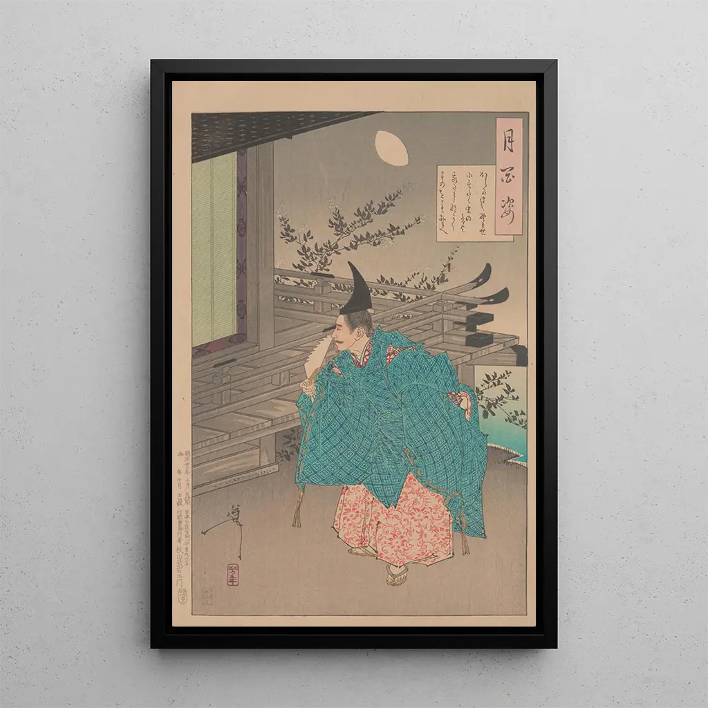 Dans cette œuvre captivante, Tsukioka Yoshitoshi nous plonge dans un univers nocturne où la lune éclaire délicatement les silhouettes des personnages. Les teintes douces et les nuances de bleu créent une atmosphère sereine, presque mystique. La technique du ukiyo-e, avec ses lignes fluides et ses détails minutieux, donne vie à cette scène poétique. Les figures semblent se mouvoir avec grâce, comme si elles dansaient sous le clair de lune, invitant le spectateur à s'immerger dans ce moment suspendu dans le temps.