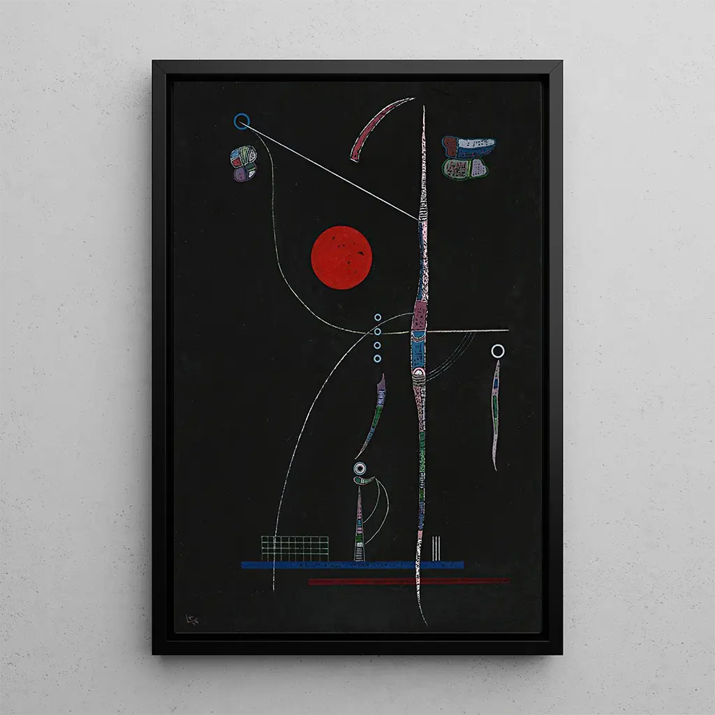 Wassily Kandinsky, født i 1866, er en ikonisk figur inden for moderne kunst, anerkendt for sin rolle i udviklingen af abstraktion. Påvirket af musik og spirituelle filosoffer, søgte han at udtrykke følelser gennem former og farver. "L'accent rouge" illustrerer hans unikke tilgang, hvor hver farve og form er valgt for sin evne til at fremkalde følelser. Kandinsky var også medlem af gruppen Blaue Reiter, som spillede en nøglerolle i udviklingen af ekspressionistisk kunst i Europa, hvilket gør ham til en uundværlig figur i sin tid.