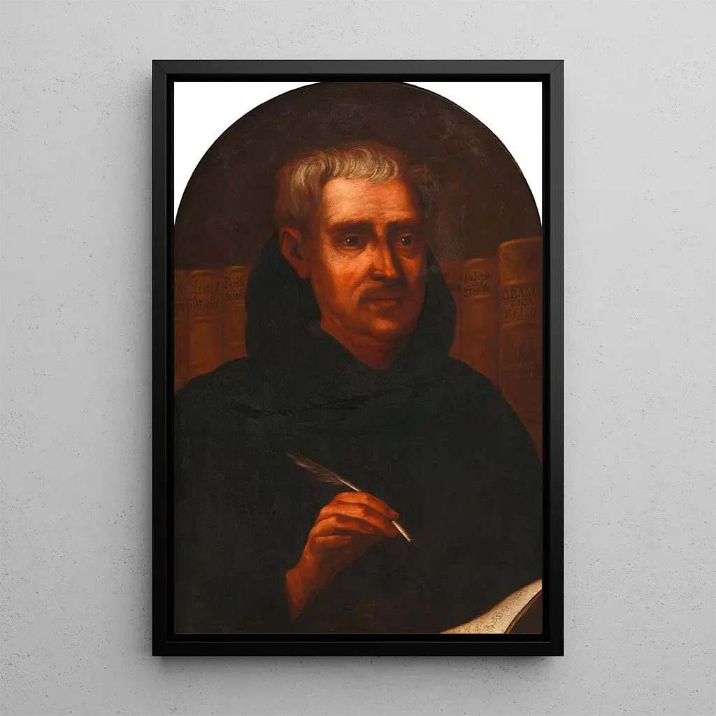 Abraham a Santa Clara prædikant og forfatter: et værk af fromhed og visdom Den kunsttryk af Abraham a Santa Clara, prædikant og forfatter, fremkalder en atmosfære præget af ro og spiritualitet. De varme og jordnære farver, blandet med lysreflekser, skaber en slående kontrast, der fanger øjet. Kompositionen, centreret omkring Abraham-figuren, inviterer til eftertanke og refleksion. De fine detaljer i hans klædedragt og det rolige udtryk i hans ansigt vidner om en teknisk kunnen, der går ud over det enkle portræt. Dette værk, både intimt og universelt, fører os ind i et øjeblik af fromhed, hvor hvert element synes fyldt med mening. Anonym: et spejl af barok spiritualitet Den anonyme kunstner bag dette værk tilhører en æra, hvor barok spiritualitet blomstrede, præget af en søgen efter følelser og dybde. Predikanter som Abraham a Santa Clara var indflydelsesrige figurer, der forkyndte budskaber om tro og moral. Selvom kunstnerens identitet forbliver ukendt, vidner hans arbejde om en tid, hvor kunst tjente som middel til evangelisering og personlig refleksion. De religiøse og kulturelle påvirkninger fra barokperioden er tydelige i dette værk, der søger at røre ved beskuerens sjæl og invitere til en åndelig søgen. En dekorativ erhvervelse med mange fordele Kunsttrykket af Abraham a Santa Clara er et dekorativt stykke, der harmonisk integreres i forskellige rum, hvad enten det er i en stue, et kontor eller et soveværelse. Dets trykkvalitet og trofasthed mod de originale detaljer gør det til et ideelt valg for dem, der ønsker at berige deres indretning med et kunstnerisk og spirituelt præg. Det æstetiske tiltrækningskraft ved dette lærred, med sine beroligende farver og inspirerende motiv, gør det til et dekorativt element, der fremkalder refleksion og ro. Ved at vælge dette kunsttryk giver du dit rum en kulturel og spirituel dimension, der er uden tvivl.