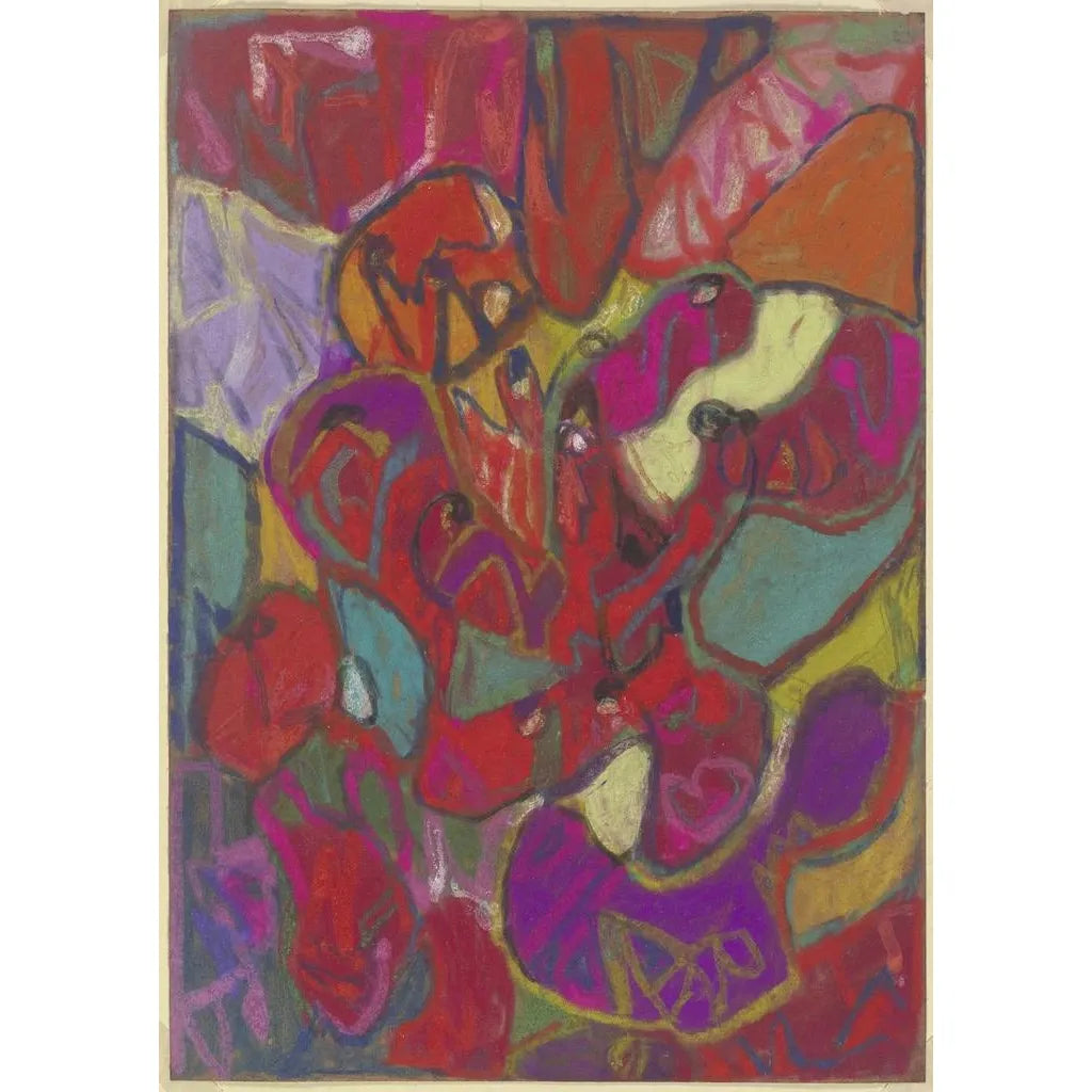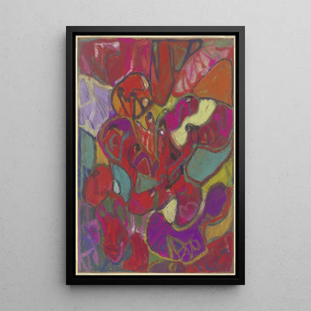 Adolf Hölzel, en ikonisk skikkelse i begyndelsen af det 20. århundrede, er anerkendt for sin væsentlige rolle i udviklingen af abstrakt kunst. Født i 1853 i Østrig, blev han påvirket af ekspressionismen og farveteorierne. Hölzel underviste på Stuttgart Kunstakademi, hvor han inspirerede mange kunstnere, nogle af hvem blev centrale figurer i moderne kunst. Hans konstante søgen efter harmoni mellem form og farve prægedes af hans tid og gør ham til en forløber, hvis arv lever videre i nutidens kunst. Den abstrakte komposition vidner om denne æstetiske søgen og afslører dybden i hans kunstneriske vision.