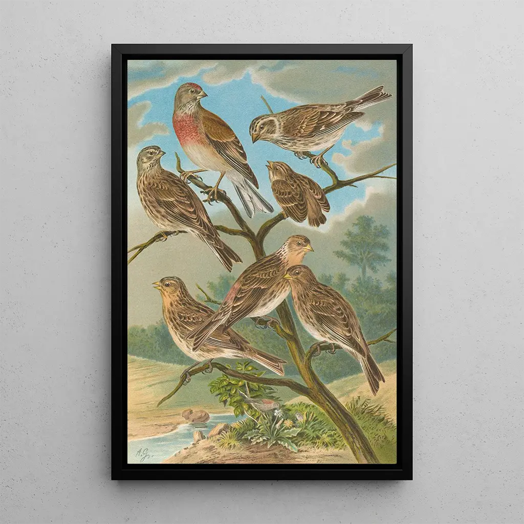 At vælge et kunsttryk af maleriet Acanthis cannabina Acanthis flavirostris er en fremragende idé til at forskønne dit hjem. Uanset om det er i stuen, på kontoret eller i soveværelset, tilføjer dette lærred et strejf af natur og farve til din indretning. Dets trykkvalitet sikrer en bemærkelsesværdig trofasthed mod de originale detaljer, hvilket gør det muligt at nyde værket, som om det var udstillet på et museum. Det æstetiske tiltrækningskraft ved dette kunsttryk gør det til et centralt element i din indretning, der vækker beundring og samtaler. Ved at integrere dette værk i dit rum inviterer du naturens skønhed ind i dit hjem.