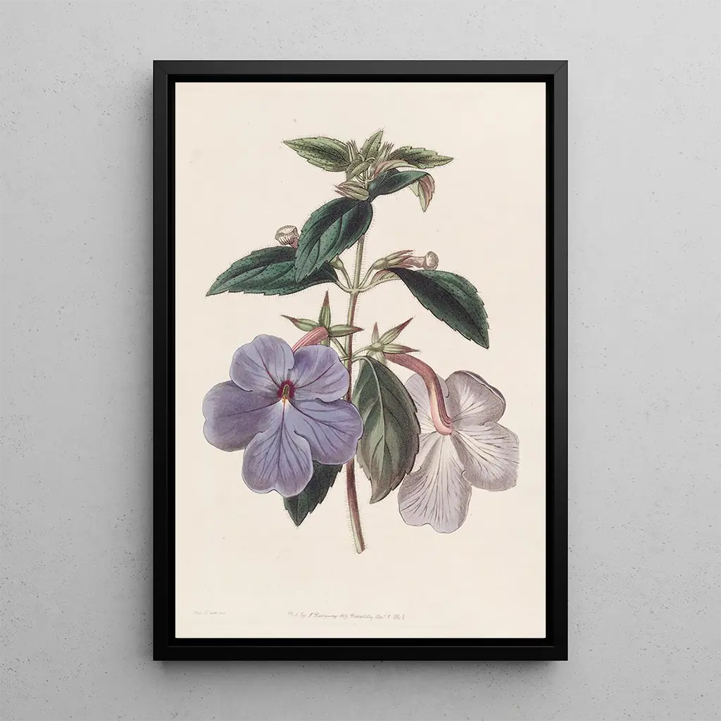 Kunsttrykket Achimènes à longues fleurs tager os med til en frodig have, hvor blomsterne blomstrer med ynde og glans. Dette værk af Sydenham Edwards fremhæver den delikate skønhed af denne plante, med livlige farver, der lyser lærredet op. Nuancerne af lilla og gul kombineres for at skabe en slående kontrast, mens de præcise detaljer af kronblade og blade afslører en enestående håndværkskunst. Atmosfæren, der udspringer af dette værk, er både glædesfyldt og beroligende, og inviterer til en rolig refleksion over naturen.