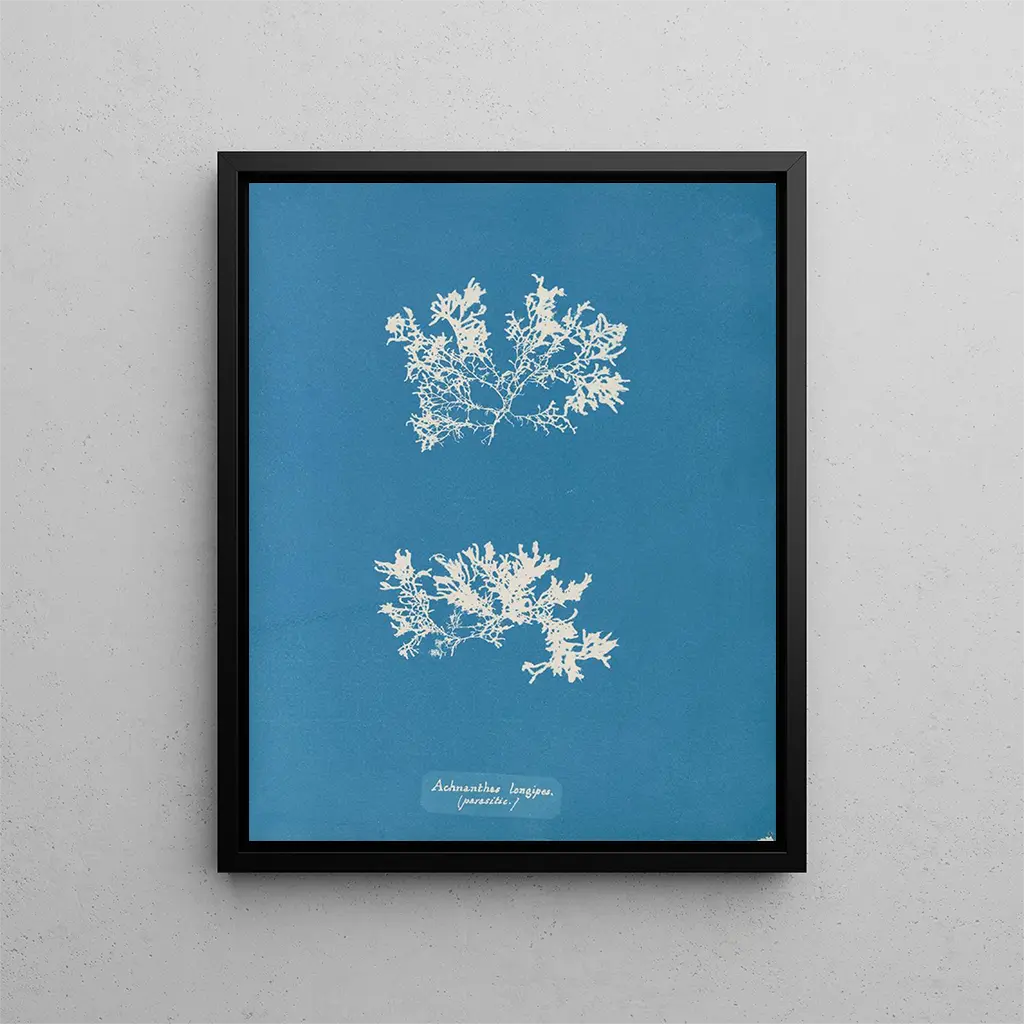 Reproduktion Achnanthes longipes parasit - Anna Atkins – Introduktion fængslende L'œuvre "Achnanthes longipes parasite" af Anna Atkins er meget mere end blot en botanisk repræsentation; det er en ægte fejring af den naturlige skønhed og videnskaben. Skabt i det 19. århundrede, indkapsler dette ikoniske værk den harmoniske forening mellem kunst og videnskab, en tendens der opstod på dette tidspunkt. Anna Atkins, pioner inden for fotografi og botaniker, formåede at fange algernes delikatesse gennem innovative teknikker. Hendes cyanotypemetode, der bruger sollys til at udskrive billeder, giver hendes værker en æterisk, næsten magisk kvalitet. Kunstværket "Achnanthes longipes parasite" giver beundrere mulighed for at dykke ned i denne fascinerende verden, hvor natur og kunst mødes med sjælden elegance. Stil og eneståendehed af værket Værket skiller sig ud gennem sin unikke tilgang til repræsentation af alger, der kombinerer videnskabelig præcision med kunstnerisk følsomhed. De minutøse detaljer af Achnanthes, gengivet med bemærkelsesværdig finesse, afslører kompleksiteten af disse mikroskopiske organismer. Farvepaletten, der spænder fra dybblå til nuancer af grøn, fremkalder en beroligende atmosfære, samtidig med at den fremhæver gennemsigtigheden og letheden af motiverne. Hver cyanotypetryk er unik, da den afhænger af eksponeringsforholdene for lyset, hvilket giver hvert værk en personlig og uforlignelig dimension. Denne eneståendehed gør "Achnanthes longipes parasite" til et uundværligt værk for dem, der værdsætter harmonien mellem natur og kunst, samtidig med at det giver anledning til refleksion over vores økosystems skrøbelighed. Kunstneren og hendes indflydelse Anna Atkins, ofte betragtet som den første kvindelige fotograf, spillede en afgørende rolle i udviklingen af botanisk fotografi. Hendes arbejde banede vejen for mange kunstnere og videnskabsfolk, hvilket viste, at kunst kunne være et kraftfuldt værktøj til studiet og dokumentationen af naturen. Ved at integrere fotografi i sin kreative proces, fremhævede Atkins ikke blot algers skønhed, men bidrog også til anerkendelsen af fotografi som en fuldgyldig kunstform. Hendes indflydelse varer ved i dag, og inspirerer generationer af kunstnere, der fortsætter med at udforske forbindelserne mellem videnskab og kunst.