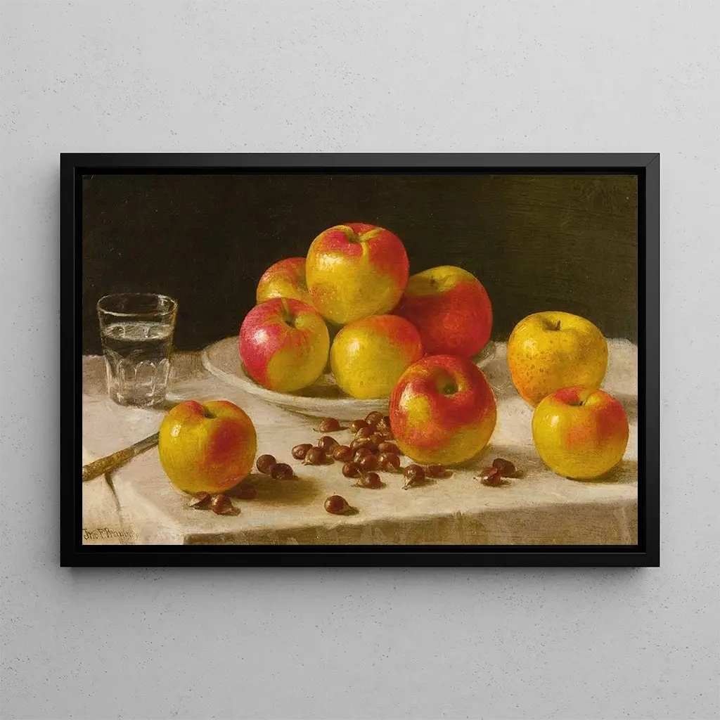 Dans cette œuvre captivante, Pommes sur une table, John F. Francis nous plonge dans un univers où la nature se dévoile dans toute sa splendeur. Les pommes, d'un rouge éclatant, sont disposées avec soin sur une table en bois, créant un contraste saisissant avec le fond sombre. La lumière, subtilement orchestrée, met en valeur les textures et les reflets des fruits, conférant à la scène une atmosphère chaleureuse et accueillante. La technique du clair-obscur, maîtrisée par l'artiste, accentue la profondeur de l'œuvre, invitant le spectateur à s'attarder sur chaque détail.