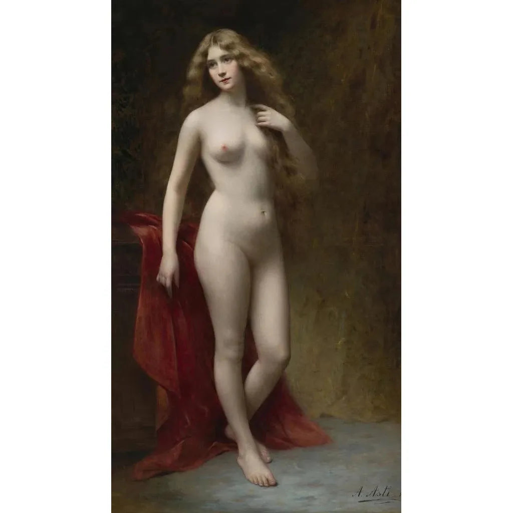 Angelo Asti, italiensk maler fra det 19. århundrede, er berømt for sine portrætter og genre-scener, der fejrer kvindelig skønhed og uskyld. Påvirket af romantikken udvikler han en stil, der fremhæver temaer som ømhed og nostalgi. Hans værker er ofte præget af en melankolsk atmosfære, der afspejler de sociale og følelsesmæssige bekymringer i hans tid. Asti har formået at fange livets øjeblikke med en unik følsomhed, hvilket gør ham til en værdsat kunstner for hans evne til at fremkalde dybe følelser gennem sine kunstværker.