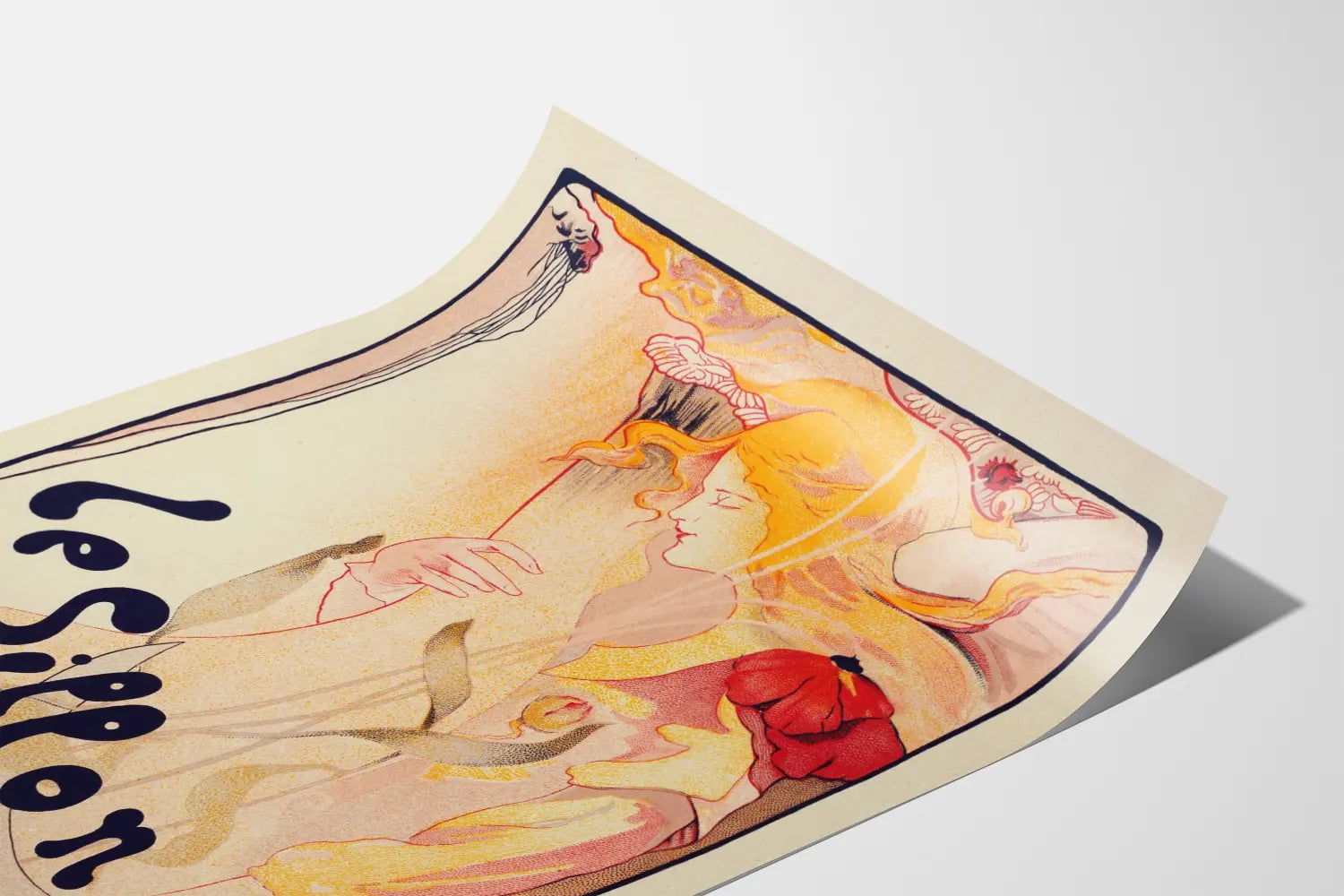Opdag dette vægdekoration plakat med titlen "Le Sillon", et ikonisk værk i Art Nouveau-stilen skabt af kunstneren Fernand Toussaint. Denne plakat skiller sig ud med sine delikate kurver og flydende linjer, der indkapsler den raffinerede æstetik fra denne kunstneriske periode. Kompositionen viser en kvindelig figur med gyldne hår, stiliseret med subtile nuancer af lyserød og orange, hvilket giver en lysende og varm effekt til hele værket. Plakaten kombinerer grafiske elementer som blomster og organiske former, typiske for Art Nouveau-bevægelsen, og fanger essensen af denne kunstneriske epoke, hvor naturen og formernes flydende karakter blev fremhævet. Teksten "Le Sillon" er harmonisk integreret i billedet med en buet og original typografi, der understreger det æstetiske præg af dette værk. Denne vægdekoration er ideel for kunst- og designentusiaster, der ønsker at tilføje et vintage og kunstnerisk præg til deres hjem. Dens unikke stil passer perfekt til stuer, kontorer eller kreative rum, og skaber en blid og inspirerende atmosfære. Uanset om det er for at fuldende en samling af gamle plakater eller for at personliggøre en væg med et subtilt grafisk element, tilbyder denne plakat en vellykket kombination af visuel skønhed og kunstnerisk udtryk. Fremstillet med omhu, er den klar til at blive indrammet og fremhævet i enhver form for moderne eller klassisk vægdekoration. Vælg denne plakat, der inviterer til eftertanke med sine varme nuancer og elegante komposition, og bring et stykke Art Nouveau-stil ind i dit hjem, som fortsat fascinerer med sin tidløse charme.