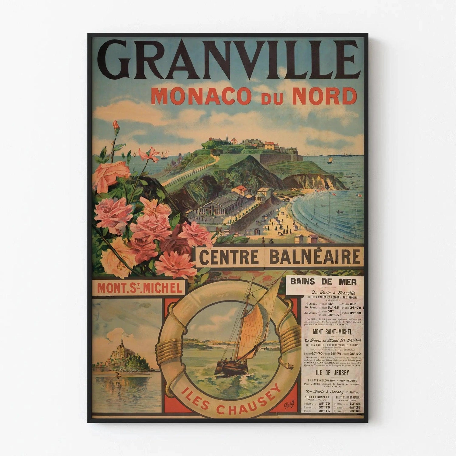 Tag med på en retro rejse langs Normandiets kyst med denne vintage Granville plakat, der fejrer den badeby-charme, som "Nordens Monaco" har.