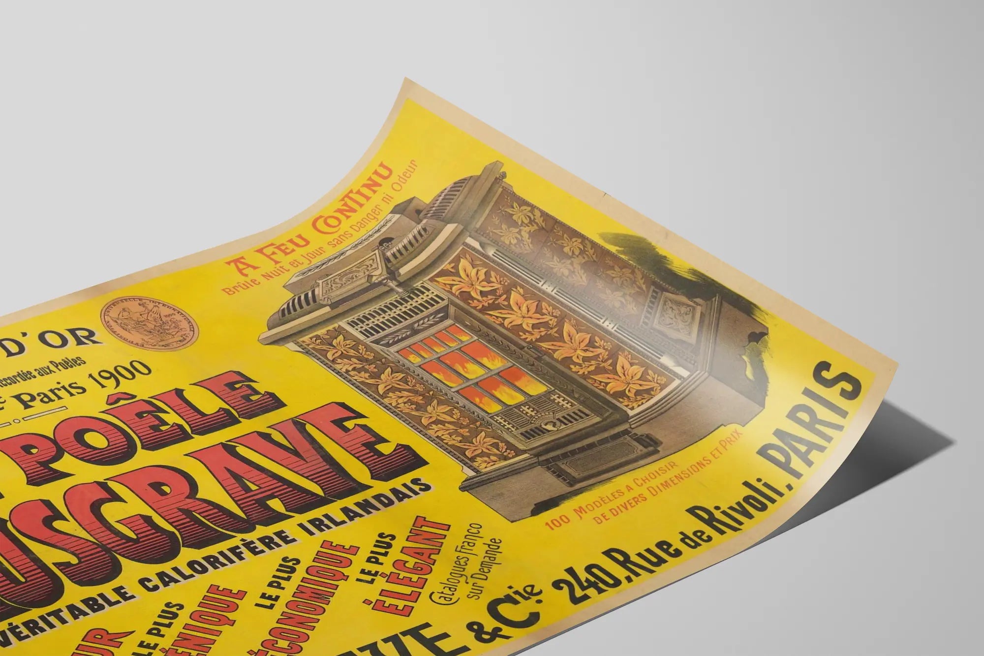 Cette affiche vintage publicitaire met en avant le poêle Musgrave, un calorifère irlandais réputé pour ses qualités exceptionnelles. Destinée à la décoration murale, cette affiche apporte une touche d'authenticité et de charme rétro à tout intérieur. Imprimée dans un style graphique ancien, elle présente le poêle en détail avec ses motifs floraux élégants et son feu visible qui symbolise chaleur et confort. Le texte souligne les atouts de ce poêle : il est décrit comme le meilleur, le plus hygiénique, économique et élégant, le tout récompensé par une médaille d'or lors de l'exposition universelle de Paris en 1900. Cette affiche peut s’intégrer aussi bien dans un salon, une cuisine ou un espace dédié à la décoration vintage. Elle s’adresse aux amateurs d’objets d’époque et aux passionnés de décoration murale qui recherchent un poster unique, plein de caractère et d’histoire. Par ses couleurs vives et son style typographique remarquable, elle sert également de point focal décoratif dans une pièce. En résumé, cette décoration murale vintage offre un clin d'œil historique à un appareil ménager traditionnel, tout en valorisant un design artistique et un message publicitaire d’époque, parfait pour les collectionneurs et les passionnés de décoration authentique.