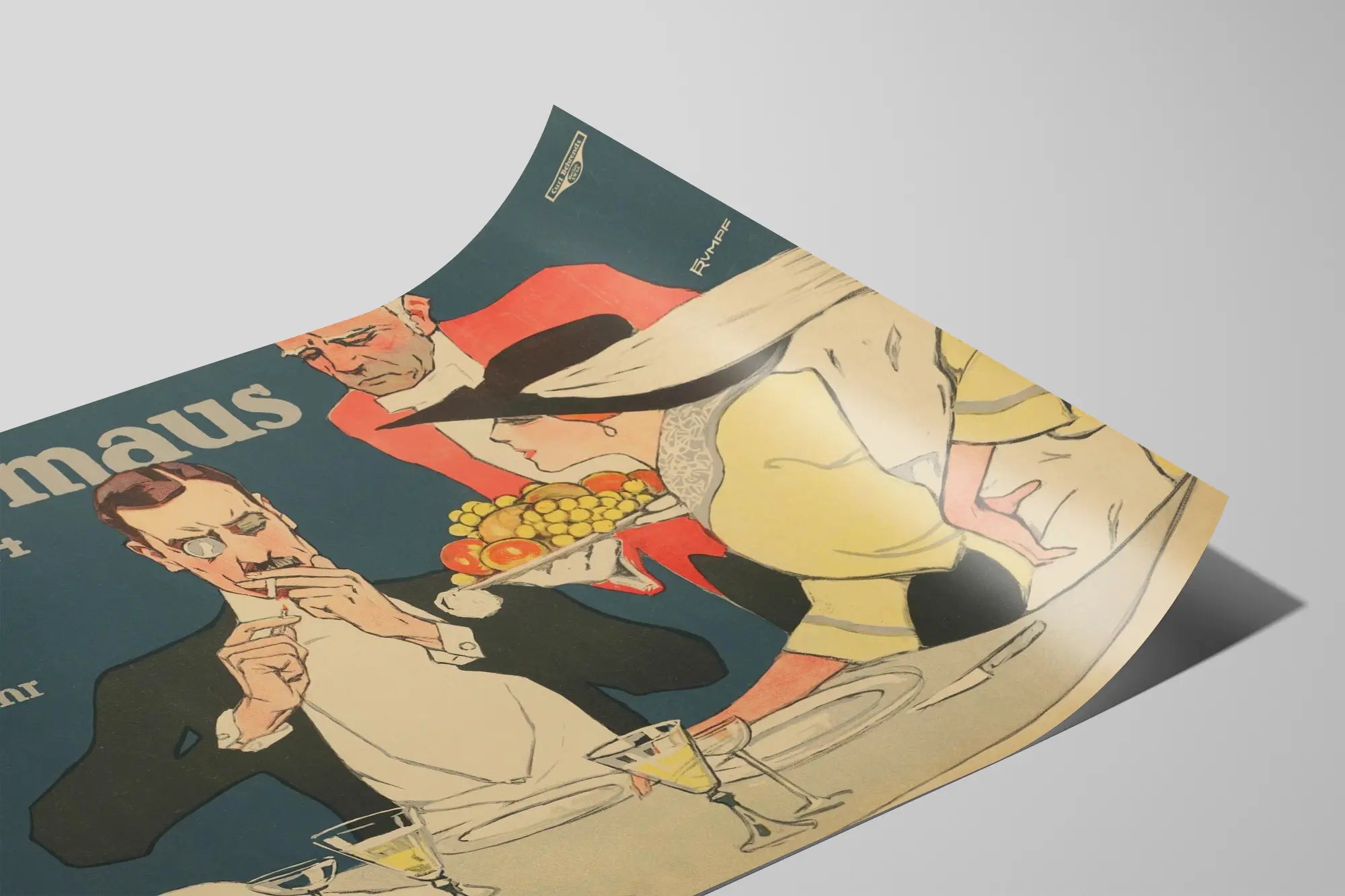 Cette affiche vintage captivante incarne l'élégance et le charme d'un restaurant à vin prestigieux, situé au numéro 14 de la rue des Tilleuls. Elle représente une scène intime avec un homme élégant en costume, allumant une cigarette, accompagné d'une femme raffinée vêtue d'une robe jaune et d'un large chapeau orné d'un voile. Un serveur vêtu d'un habit rouge apporte un plateau garni de fruits frais, soulignant l'ambiance conviviale et distinguée de ce lieu de plaisir. Cette décoration murale, typique de l'art publicitaire ancien, est idéale pour apporter une touche authentique et sophistiquée à votre intérieur. Le style graphique simple, mais coloré, met en valeur les détails comme les verres à pied posés sur une nappe blanche impeccable, ainsi qu'une bouteille de vin glacée dans un seau, évoquant l'art de vivre et les plaisirs gastronomiques. Ce poster est parfait pour embellir un espace dédié à la dégustation de vins, une salle à manger ou un coin convivial. Sa composition équilibrée entre texte et illustration attire le regard et crée une atmosphère chaleureuse invitant à la détente et à la gourmandise. Le texte en allemand ajoute un accent européen, renforçant le caractère raffiné et culturel du tableau. En choisissant cette affiche pour votre décoration murale, vous apportez une esthétique vintage authentique et un art graphique qui célèbre l'expérience conviviale autour du vin et de la gastronomie. Ce motif est un véritable hommage à l'art de recevoir et au plaisir partagé, parfait pour les amateurs de décoration originale et de souvenirs d'époque.