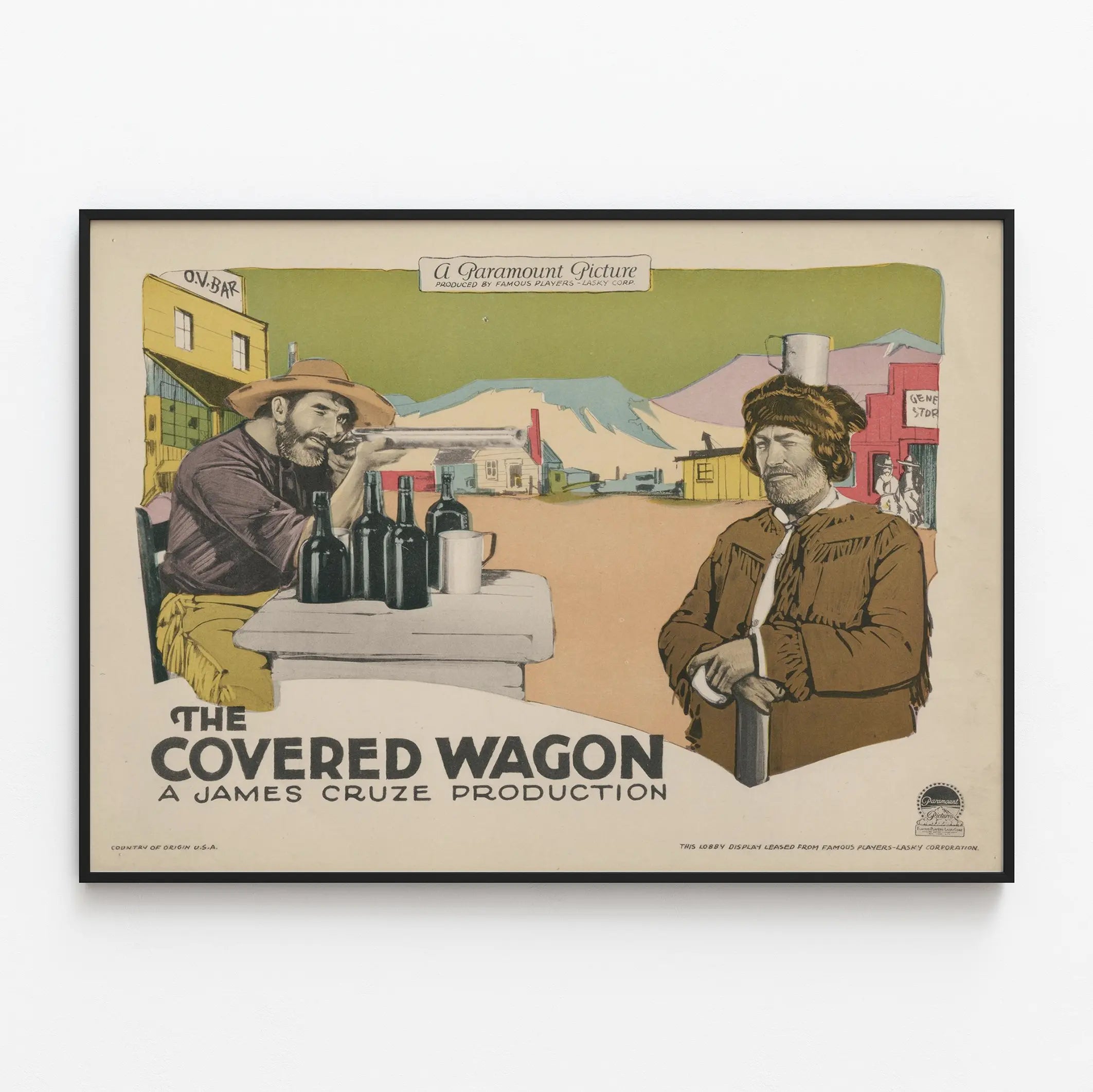 Cette affiche vintage intitulée « The Covered Wagon » est une pièce de décoration murale idéale pour les amateurs de cinéma classique et de westerns. Ce poster, produit par Paramount Pictures, représente une scène typique du Far West, avec deux hommes en tenue d'époque : l'un est assis à une table, visant avec un fusil, tandis que l'autre, plus calme, porte une coiffe en fourrure et une veste à franges. L'arrière-plan coloré met en scène des bâtiments typiques des villes de western, avec une palette de couleurs à la fois douces et contrastées qui apporte une ambiance authentique et intemporelle. Cette affiche illustrée capture l'essence d'un film dramatique ancien, rappelant l'ère du cinéma muet et des premiers westerns. Elle s'intégrera parfaitement dans une décoration murale d'intérieur mêlant vintage et nostalgie, apportant une atmosphère riche en histoire et en culture américaine. En format poster, elle convient particulièrement bien à une mise en valeur dans un salon, un bureau ou une salle dédiée au cinéma ou à la lecture. Ce tableau décoratif est une invitation à l'aventure et à l'évasion, pour tous ceux qui souhaitent revivre l'âge d'or du cinéma hollywoodien au travers d'une décoration murale originale et pleine de caractère. Grâce à sa composition graphique et son style unique, cette affiche murale se démarque comme un élément clé pour un design d'intérieur authentique et passionné.