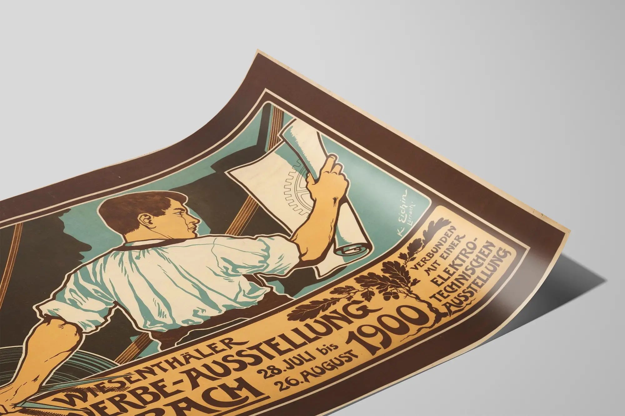 Affiche Vintage Wiesenthäler Gewerbe-Ausstellung Loerrach 1900