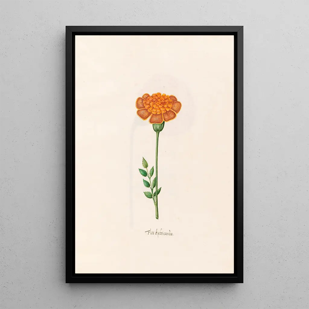 Kunsttrykket af Fleur d'Afrique, værk af Magdalena Rosina Funck, fremkalder en eksplosion af farver og former, der fejrer mangfoldigheden i floraen. De strålende nuancer af gult og orange flettes sammen med grønne nuancer, hvilket skaber en harmonisk og dynamisk komposition. Funcks teknik, der kombinerer præcision og følsomhed, gør det muligt at føle varmen og energien i dette ikoniske blomster. Hvert detalje, fra kronblade til blade, er udført med omhu, hvilket inviterer betragteren til at værdsætte skønheden og kompleksiteten i naturen.