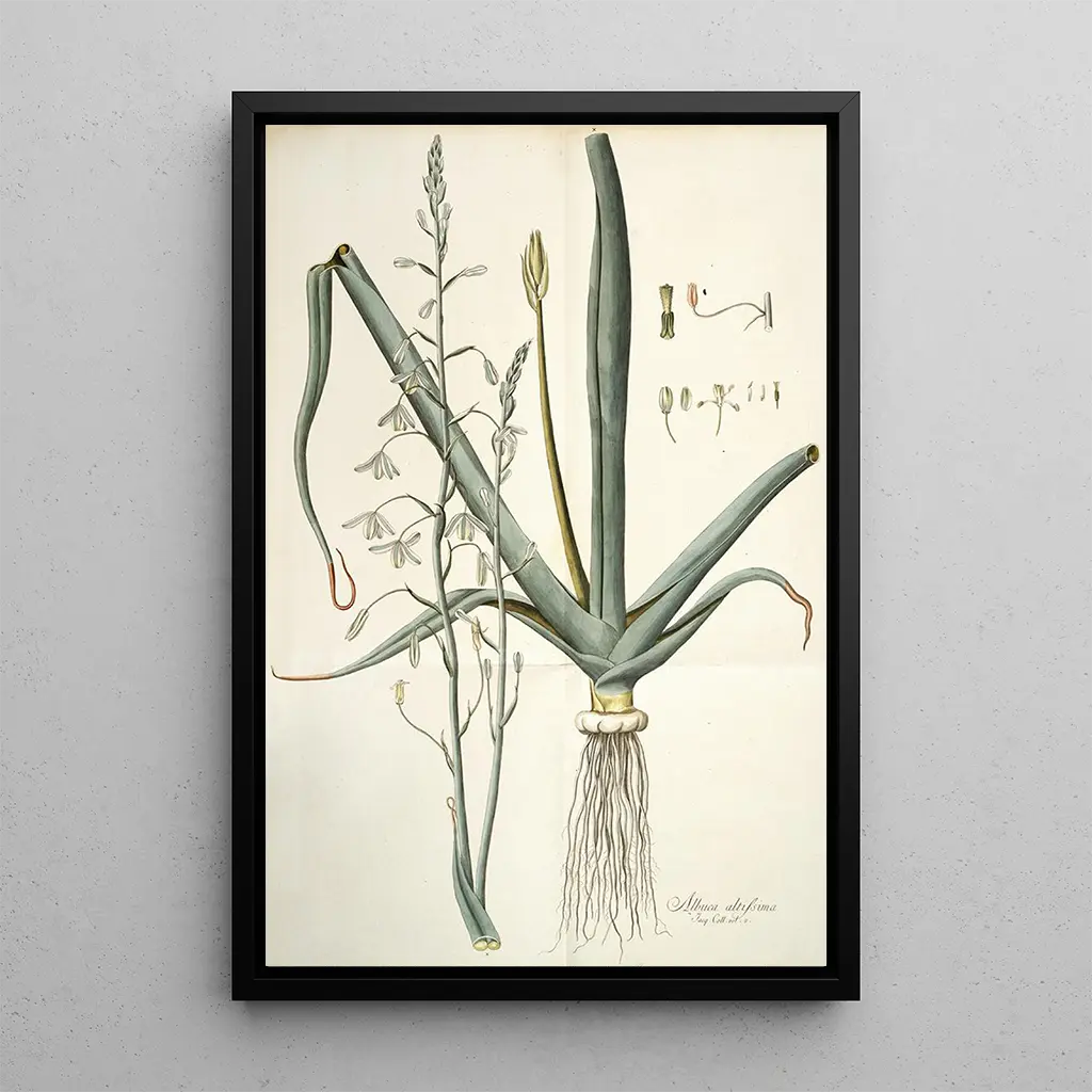 Kunsttrykket af "Albuka altissima" er et dekorativt stykke, der vil berige ethvert opholdsrum, hvad enten det er en stue, et kontor eller et soveværelse. Dets trykkvalitet og opmærksomhed på detaljer gør dette lærred til et ideelt valg for dem, der værdsætter botanisk kunst. Ved at integrere dette værk i din indretning tilføjer du et strejf af natur og elegance til dit hjem. Den æstetiske tiltrækningskraft ved dette kunsttryk ligger i dets balance mellem kunst og videnskab, hvilket gør dette lærred til en værdifuld tilføjelse til din dekorative samling.