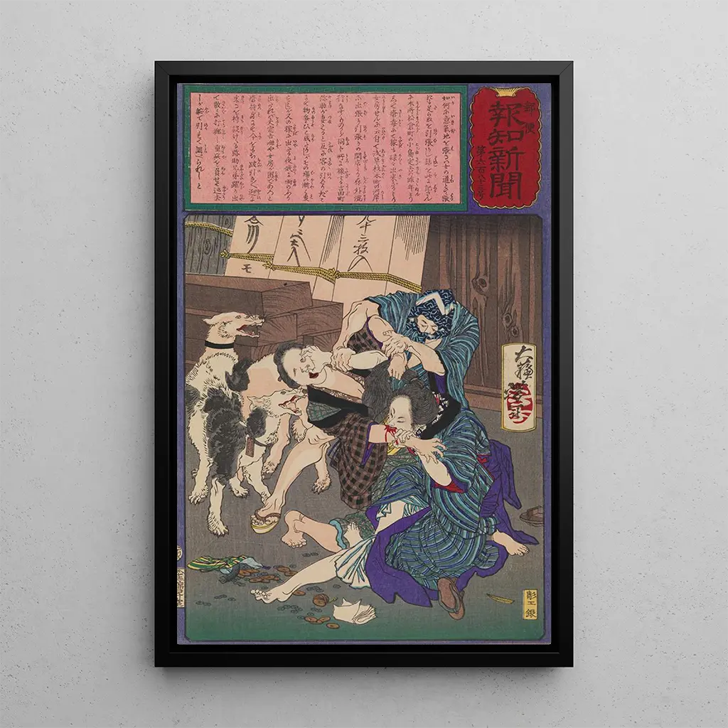 Tsukioka Yoshitoshi, figure emblématique de l'estampe japonaise, a su capturer les nuances de la société de son temps. Né en 1839, il a vécu une période de grands bouleversements, marquée par la transition entre l'ère Edo et l'ère Meiji. Ses œuvres, souvent inspirées par des récits historiques et des légendes, reflètent les tensions sociales et les changements culturels de l'époque. Yoshitoshi a été influencé par ses contemporains tout en développant un style unique qui mêle tradition et modernité. La kunsttryk de Prostituées amateurs se battant pour un client illustre parfaitement cette capacité à évoquer des thèmes profonds tout en restant accessible au grand public.