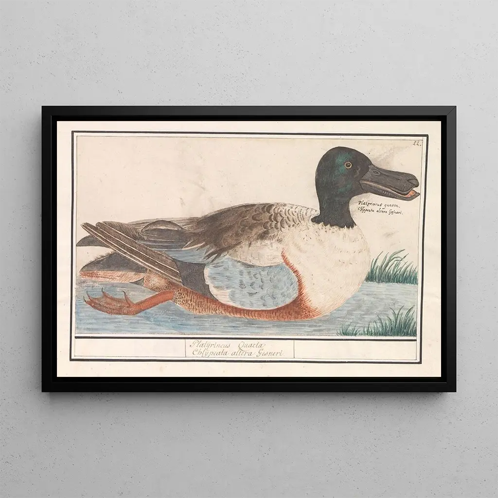 Kunsttrykket af "Canard souchet Anas clypeata" er et dekorativt stykke, der vil berige dit hjem, uanset om det er i et kontor, en stue eller et soveværelse. Dets trykkvalitet sikrer en trofast gengivelse af farver og detaljer i det originale værk, hvilket tilføjer et strejf af elegance til din indretning. Dette maleri, med sin naturlige stemning, fremkalder roen i vandmiljøer og inviterer til eftertanke. Ved at vælge dette lærred træffer du et valg om en raffineret dekoration, samtidig med at du fejrer skønheden i den vilde fauna.