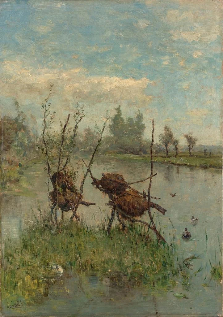 Paul Joseph Constantin Gabriël, en ikonisk skikkelse inden for hollandsk impressionisme, formåede at fange skønheden i landskaber gennem en unik tilgang. Født i 1828, blev han påvirket af mestre som Claude Monet og Johan Barthold Jongkind, der formede hans lyse og farverige stil. Gabriël arbejdede primært i det 19. århundrede, en periode præget af en søgen efter lys og farve i kunsten. Hans værk, ofte centreret omkring naturen, vidner om hans tilknytning til landlivet og den hollandske landskabs skønhed, hvilket gør ham til en uundværlig kunstner i sin tid.