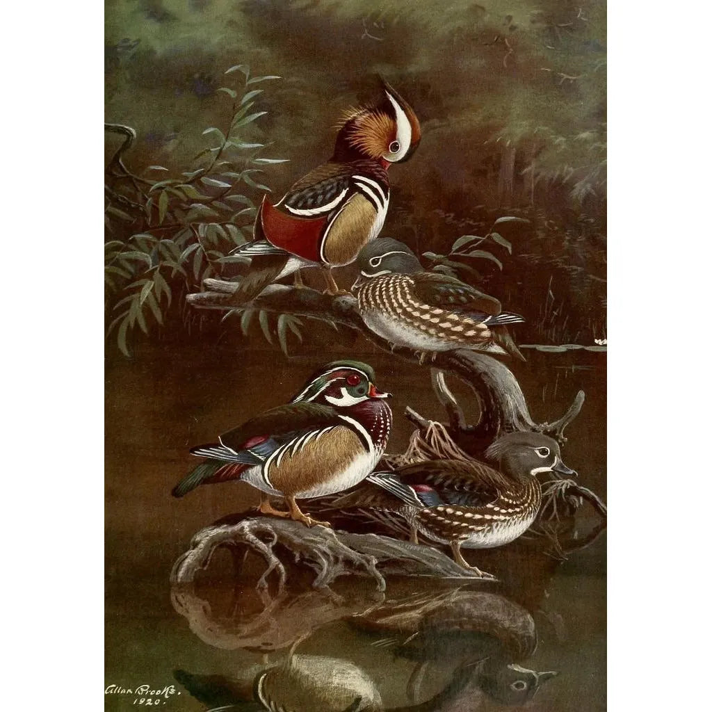 Kunsttryk | Andemad mandarinand og Caroline-anda - Allan Brooks