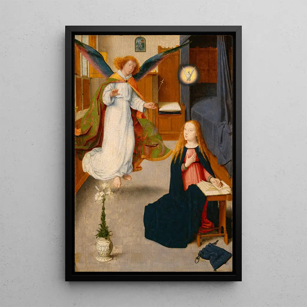 I "L'annoncering" fanger Gerard David mødet mellem ærkeenglen Gabriel og Jomfru Maria, et øjeblik fyldt med følelser og spiritualitet. Den harmoniske komposition fremhæver de centrale figurer, omgivet af en rig og symbolsk baggrund. De livlige farver og de omhyggelige detaljer, typiske for olie maleteknikken, skaber en atmosfære, der er både rolig og dynamisk. Det bløde lys, der bader scenen, understreger den hellige dimension af denne begivenhed og inviterer betragteren til at føle dybden af denne guddommelige meddelelse.