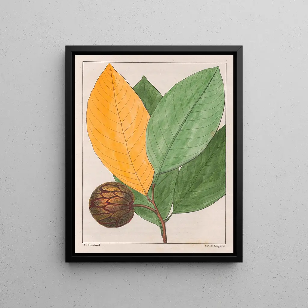 L'œuvre "Anona sylvatica" af Auguste de Saint-Hilaire er en ægte hyldest til den naturlige skønhed, et et maleri, der overskrider det simple blik for at invitere til dyb refleksion. Dette mesterværk, der fanger essensen af den tropiske flora, transporterer betragteren til hjertet af de frodige skove i Sydamerika. Ved at fremhæve rigdommen af former og farver formår Saint-Hilaire at skabe en fordybende atmosfære, hvor hver detalje synes at vibrere af sin egen livskraft. Kunsttrykket af dette værk giver mulighed for at genopdage naturens magi gennem en kunstnerisk linse, båret af en mand passioneret omkring botanik og æstetik.