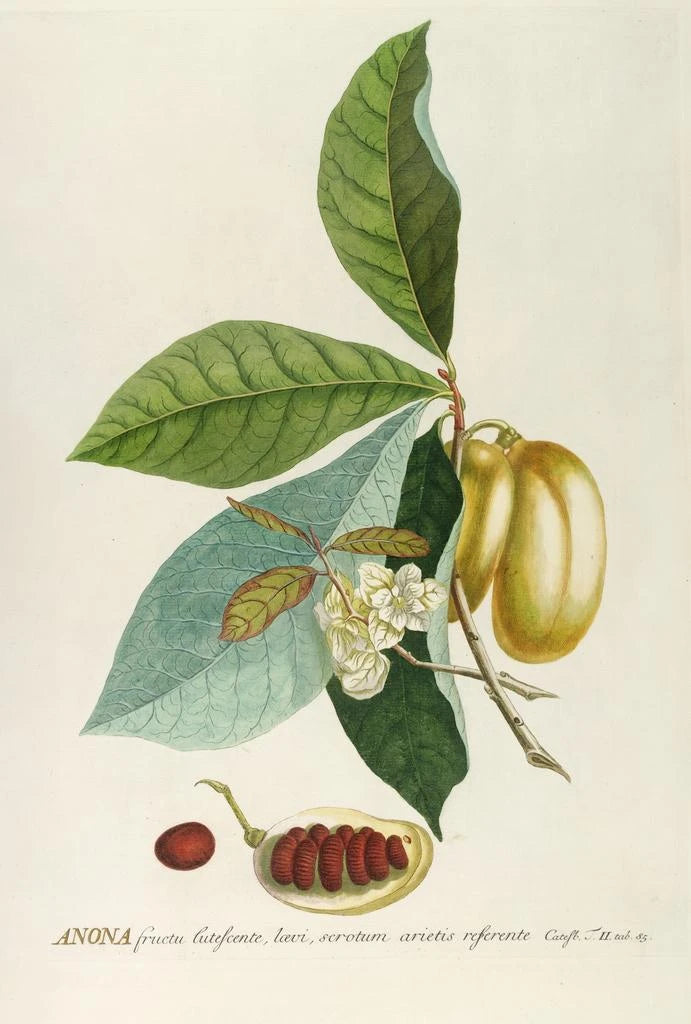Georg Dionysius Ehret, aktiv i det 18. århundrede, er anerkendt som en af de største botaniske illustratører i sin tid. Født i Tyskland, blev han påvirket af den videnskabelige bevægelse i sin æra, der værdsatte omhyggelig observation af naturen. Hans værker, herunder Anone, vidner om en passion for botanik og et ønske om at fange mangfoldigheden af plantearter. Ehret samarbejdede med anerkendte botanikere og bidrog dermed til fremskridt inden for botanisk viden. Hans stil, der kombinerer videnskabelig præcision med kunstnerisk følsomhed, har efterladt en varig arv inden for kunst og videnskab.