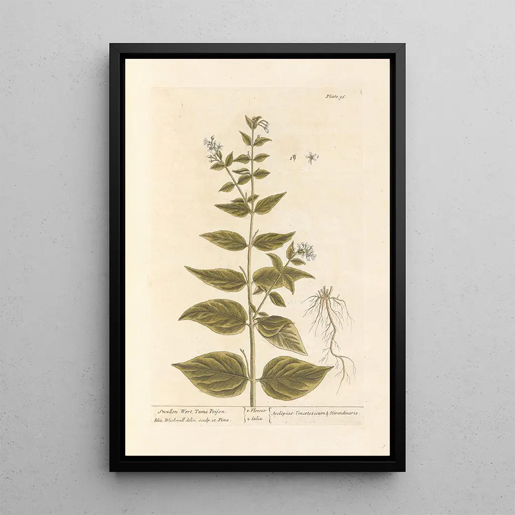 Den kunsttryk af Elizabeth Blackwell, Dompte-venin, er en fængslende illustration, der fremkalder dualiteten i naturen. Dette maleri fremhæver den giftige plante med en slående præcision, der afslører dens komplekse detaljer og nuancerede farver. Farvetoner, der spænder fra mørkegrøn til dyb lilla, skaber en fascinerende og let uhyggelig atmosfære. Akvarelteknikken, kombineret med en skarp observationssans, hylder skønheden, samtidig med at den understreger den potentielt farlige karakter af denne plante. Dette værk inviterer til refleksion over forholdet mellem menneske og natur.