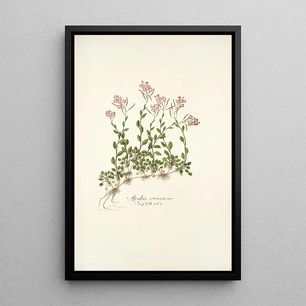 Kunsttrykket af Arabis ovirensis er et ideelt dekorativt stykke til forskellige rum, hvad enten det er i en stue, et kontor eller et soveværelse. Dets trykkvalitet sikrer en bemærkelsesværdig trofasthed over for detaljerne i det originale værk, hvilket hylder Jacquins kunst. Det æstetiske tiltrækningskraft ved dette lærred ligger i dets evne til at tilføre natur og ro til dit hjem. Ved at vælge dette kunsttryk vælger du et værk, der ikke blot forskønner dit rum, men også vækker en passion for botanik og kunst, hvilket skaber en harmonisk og inspirerende atmosfære.