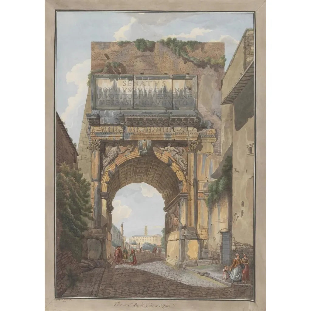 Født i 1748, er Abraham Louis Rodolphe Ducros en schweizisk kunstner, hvis værker er præget af neoklassicisme og romantik. Påvirket af rejser i Italien har han specialiseret sig i at afbilde landskaber og historiske arkitekturer. Arc de Titus er et perfekt eksempel på hans evne til at immortalere ikoniske steder, samtidig med at han indarbejder en romantisk følelse. Gennem sine værker har Ducros formået at fange ånden af sin tid, ved at blande realisme og idealisering, og har dermed efterladt en varig arv inden for kunstverdenen.