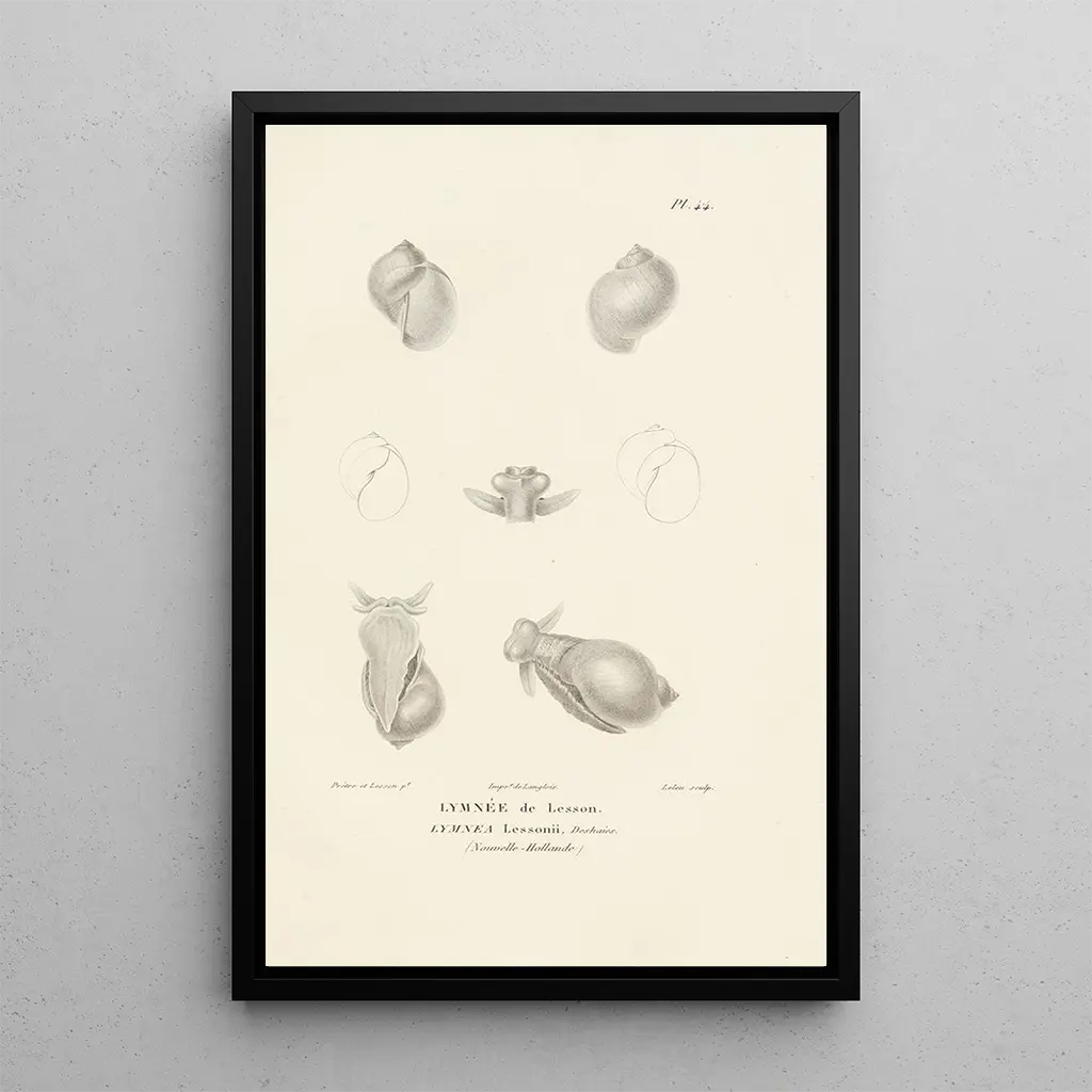 Kunsttrykket af Centurie zoologique Pl44 skiller sig ud med sin livlige og detaljerede tilgang til den eksotiske fauna. Hvert dyr er gengivet med bemærkelsesværdig præcision, hvilket fremhæver de klare farver og de varierede teksturer i deres pels eller fjerdragt. René Primevère Lesson's værk udstråler en atmosfære af forundring og inviterer til en visuel udforskning af naturens vidundere. Teknikken med gravering, kombineret med en skarp sans for detaljer, skaber en fuldstændig fordybelse i dette fascinerende dyreunivers.