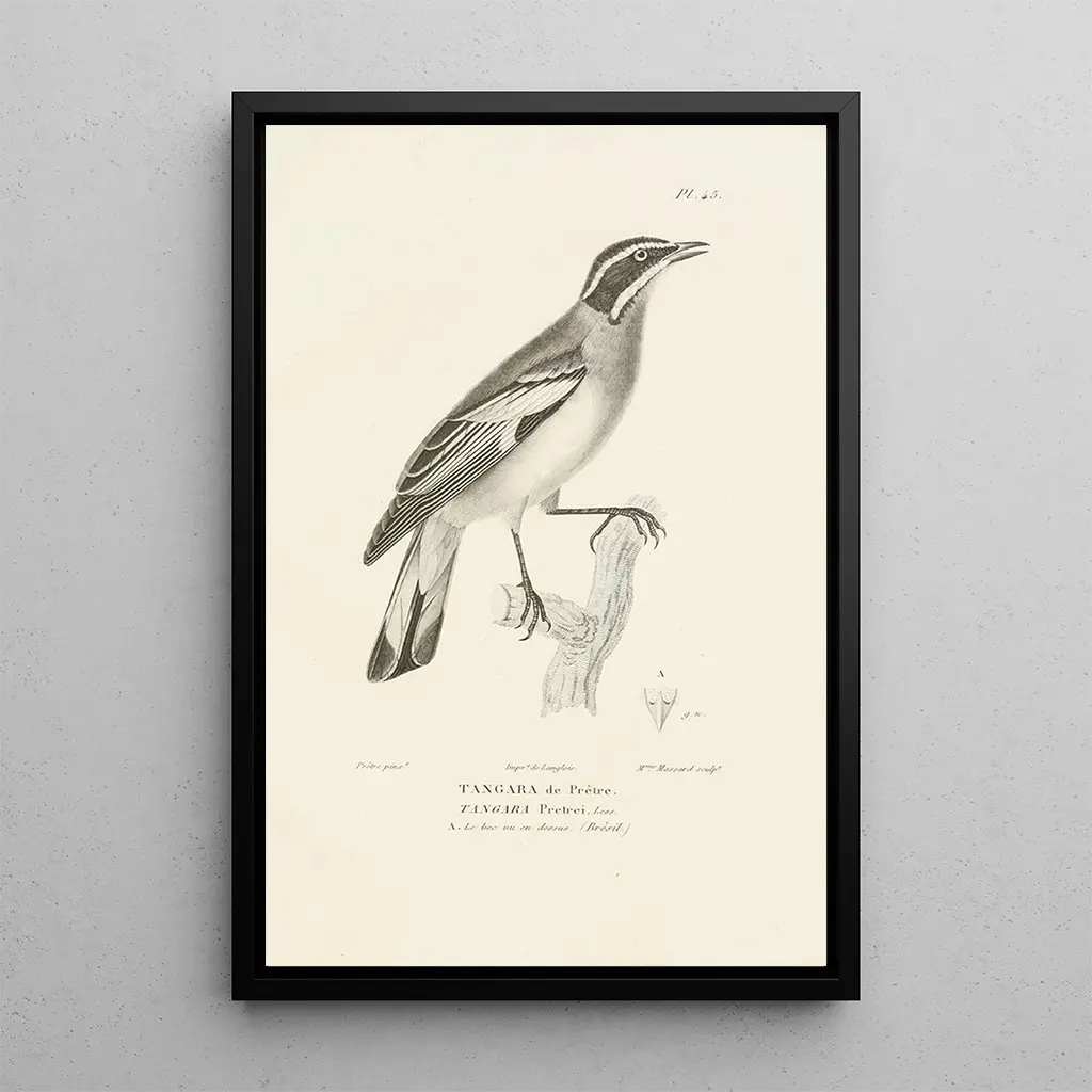 Den kunsttryk Centurie zoologique Pl45 af René Primevère Lesson dykker ned i et rigt univers fyldt med detaljer og farver. Dette ikoniske værk, skabt med en præcis graveringsteknik, fremhæver dyrearter i dynamiske og elegante positurer. De livlige nuancer og de delikate skygger skaber en levende, næsten håndgribelig atmosfære, der inviterer betragteren til at undre sig over naturens skønhed. Hvert element er omhyggeligt arrangeret, hvilket skaber en harmonisk komposition, der fanger øjet og stimulerer fantasien.