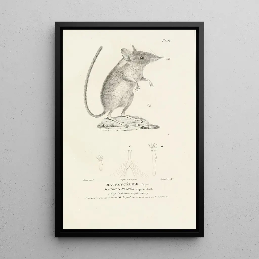 Den kunsttryk af Centurie zoologique Pl12 tager os med ind i en fascinerende verden, hvor hver detalje er omhyggeligt observeret. De livlige farver og de delikate nuancer af de afbildede dyr fanger øjet og vækker fantasien. Den graveringsteknik, Lesson bruger, gør det muligt at gengive teksturen af fjerdragt og pels på en næsten taktil måde. Atmosfæren, der udspringer af dette værk, er både videnskabelig og poetisk, og inviterer seeren til at udforske rigdommen i den jordiske fauna. Hver skabning synes at få liv, hvilket vidner om den forundring, naturen vækker.