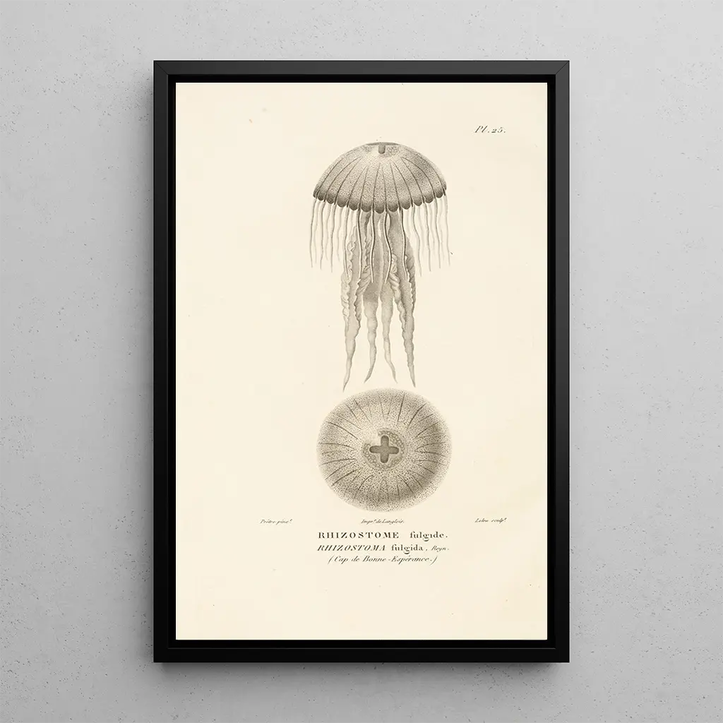 Centurie zoologique Pl25 : en fejring af dyrelivet Kunsttrykket Centurie zoologique Pl25 af René Primevère Lesson er et fascinerende værk, der fremhæver skønheden og mangfoldigheden af dyrearter. Gennem en palette af livlige farver og enestående detaljegrad transporterer dette lærred seeren til en verden, hvor hver skabning synes at få liv. De dynamiske positurer af dyrene, kombineret med en delikat baggrund, skaber en atmosfære, der er både levende og poetisk. Dette værk inviterer til eftertanke og forundring og afslører dyrelivets rigdom på en ny måde. René Primevère Lesson : en kunstner i tjeneste for videnskaben René Primevère Lesson, naturforsker og kunstner fra det 19. århundrede, spillede en afgørende rolle i zoologisk illustration. Hans videnskabelige uddannelse gjorde ham i stand til at skabe værker med en uovertruffen præcision, der forener kunst og viden. Lesson blev påvirket af de opdagelser, der fandt sted i hans tid, hvilket berigede hans forståelse af biodiversitet. Hans illustrationer, som Centurie zoologique, er ikke kun kunstneriske vidnesbyrd, men også væsentlige bidrag til videnskaben. Ved at fange dyrenes skønhed med sådan omhu har han formået at øge offentlighedens bevidsthed om den naturlige verdens rigdom. En dekorativ tilføjelse med mange fordele At vælge kunsttrykket af maleriet Centurie zoologique Pl25 er at vælge en raffineret og berigende dekoration. Dette lærred passer perfekt ind i forskellige rum, hvad enten det er en stue, et kontor eller et soveværelse, og tilføjer et strejf af natur og elegance. Kvaliteten af trykket sikrer en bemærkelsesværdig trofasthed over for detaljerne og farverne i det originale værk, hvilket garanterer en varig æstetisk appel. Ved at tilføje dette kunsttryk til dit hjem, behøver du ikke blot at forskønne dit rum, men inviterer også en del af biodiversiteten ind i din hverdag, hvilket skaber et inspirerende og levende miljø.
