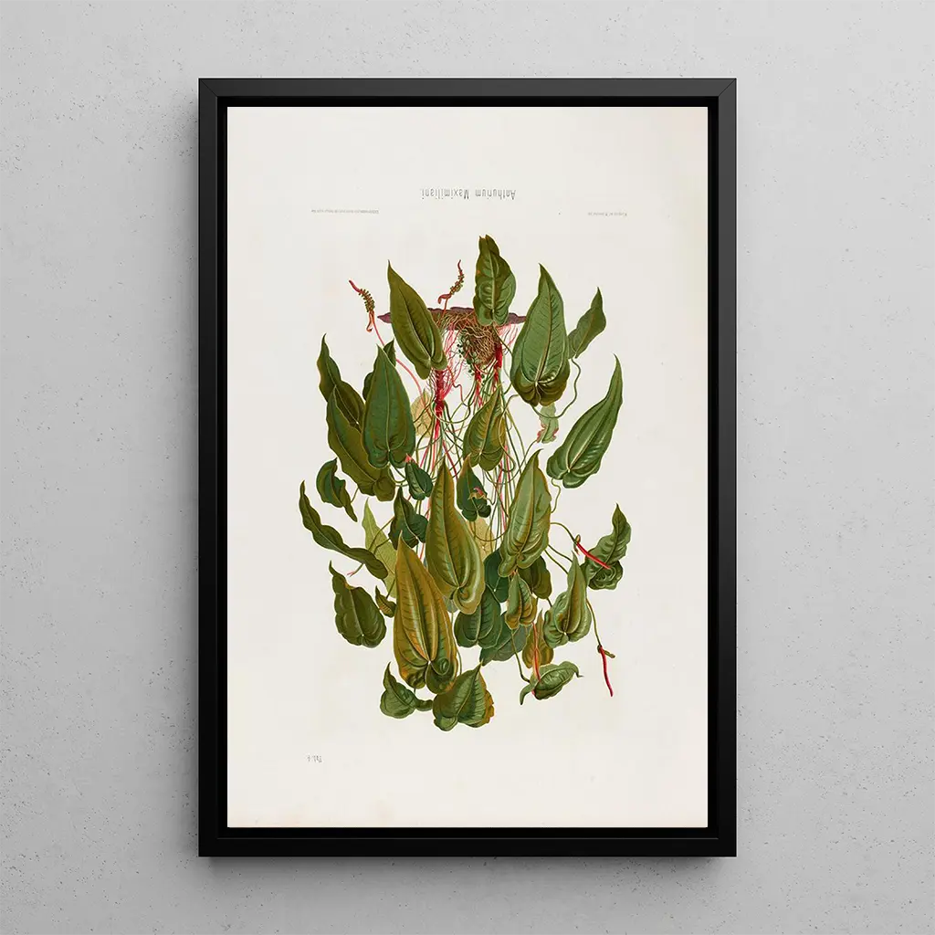 Kunsttrykket "Aroideae Maximilianae Pl04" er et dekorativt stykke, der passer perfekt ind i forskellige rum, uanset om det er i en stue, et kontor eller et soveværelse. Dets trykkvalitet og trofasthed mod de originale detaljer gør det til et ideelt valg for botanik- og kunstentusiaster. Dette kunsttryk tilføjer et strejf af eksotisme og friskhed til dit hjem, samtidig med at det skaber samtaler om naturen og kunsten. Med sin ubestridelige æstetiske appel er dette lærred en invitation til fordybelse og flugt til fjerne egne.
