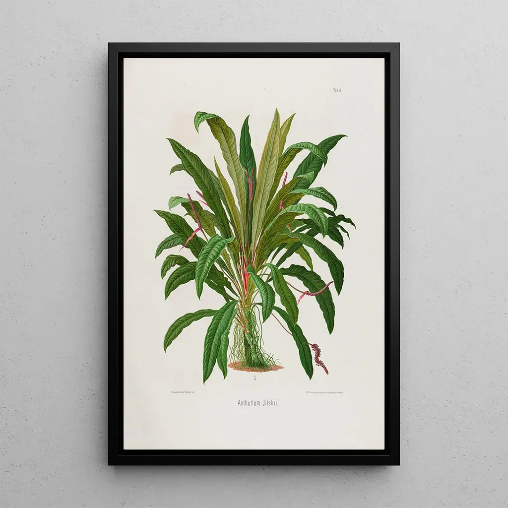 Aroideae Maximilianae Pl06: en hyldest til den tropiske biodiversitet Kunsttrykket Aroideae Maximilianae Pl06 tager os med ind i en frodig verden, hvor naturen udtrykker sig med glans. Nuancerne af grønt, fra det lyseste til det mørkeste, fremkalder rigdommen i de tropiske regnskove. Den graveringsteknik, kunstneren har anvendt, gør det muligt at fange de fine detaljer i blade og stængler, hvilket skaber en atmosfære, der både er beroligende og fascinerende. Hvert element i dette værk synes at vibrere under lyset, hvilket inviterer betragteren til at udforske floraens subtiliteter. Dette lærred er en sand fejring af den naturlige skønhed, en hyldest til mangfoldigheden af plantearter. Heinrich Wilhelm Schott: en pioner inden for kunstnerisk botanik Heinrich Wilhelm Schott, botaniker og illustrator fra det 19. århundrede, formåede at forene videnskab og kunst i sine værker. Født i 1794, dedikerede han sit liv til studiet af tropiske planter og blev en uundværlig figur inden for botanikken. Hans arbejde blev påvirket af de botaniske opdagelser i hans tid, og han samarbejdede med forskere for at dokumentere den eksotiske flora. Schott er især kendt for sine illustrationer af familien Araceae, som inkluderer Aroideae Maximilianae. Hans omhyggelige tilgang og sans for detaljer har gjort det muligt at bringe mindre kendte arter frem i lyset, hvilket har bidraget til fremskridt inden for botanisk viden. En dekorativ tilføjelse med mange fordele Kunsttrykket Aroideae Maximilianae Pl06 er et dekorativt stykke, der harmonisk integreres i forskellige rum, uanset om det er en stue, et kontor eller et soveværelse. Det høje trykkvalitet og trofastheden over for de originale farver gør det til et ideelt valg for dem, der ønsker at tilføre et strejf af natur til deres hjem. Den æstetiske appel ved dette lærred ligger i dets evne til at fremkalde ro og friskhed i de tropiske landskaber. Ved at vælge dette værk vælger du en dekoration, der ikke blot forskønner, men også fortæller en historie om passion for botanik og naturlig skønhed.