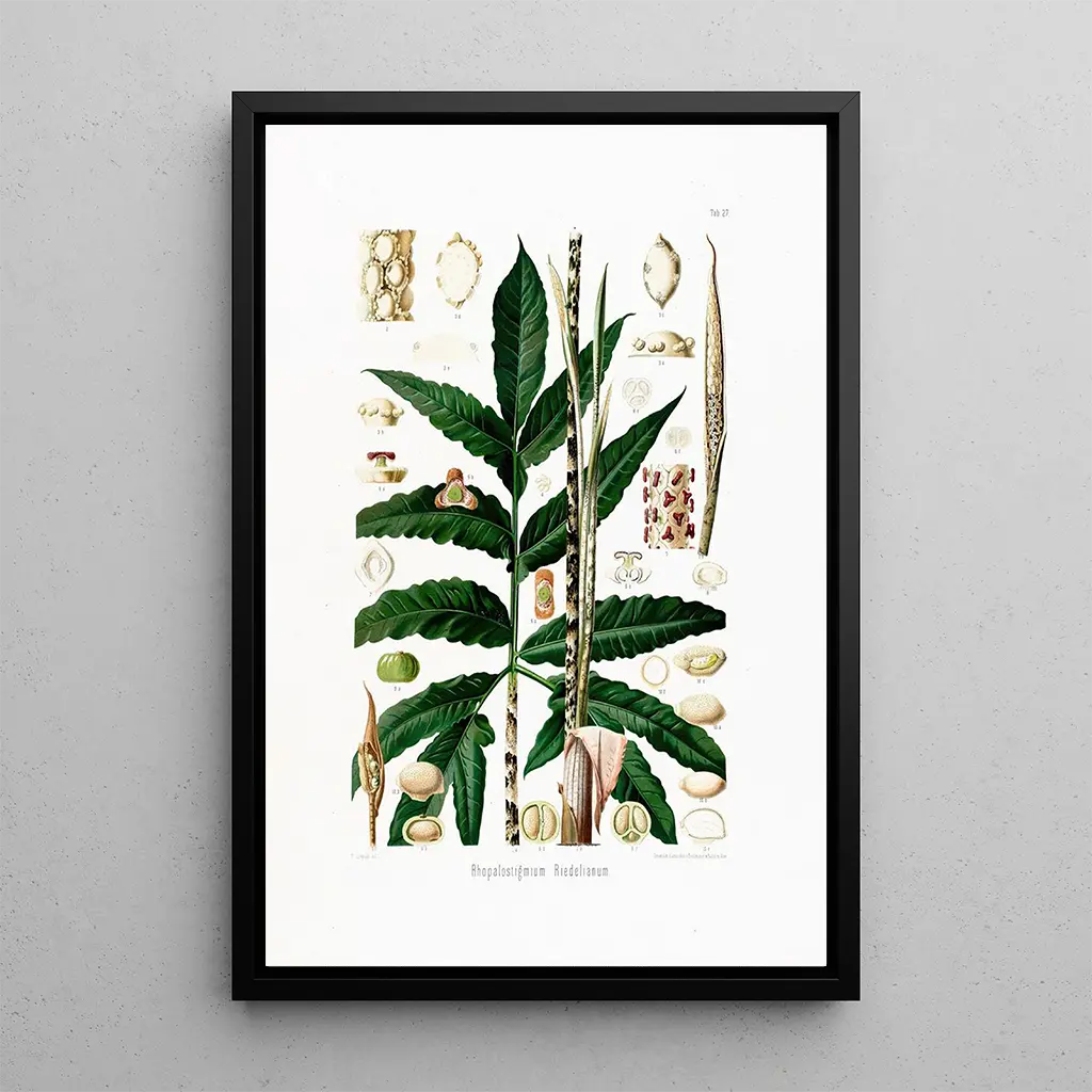 Aroideae Maximilianae Pl27 : en fejring af den frodige natur værket "Aroideae Maximilianae Pl27" af Heinrich Wilhelm Schott er en sand hyldest til biodiversiteten. Denne botaniske illustration, udført med omhu og præcision, fanger skønheden i bladene og blomsterne på denne tropiske plante. De livlige farver, der spænder fra dybe grønne til strålende nuancer af gult og violet, skaber en levende og dynamisk atmosfære. Akvarelteknikken, kombineret med fine detaljer, giver liv til denne komposition og inviterer betragteren til at dykke ned i det frodige univers af Aroideae. Hvert penselstrøg synes at ånde friskhed og vitalitet fra naturen. Heinrich Wilhelm Schott : en pioner inden for kunstnerisk botanik Heinrich Wilhelm Schott, botaniker og illustrator fra det 19. århundrede, markerede sin tid med sine bidrag til studiet af tropiske planter. Født i 1794, dedikerede han sit liv til udforskning og dokumentation af floraen i Sydamerika og Pacificøerne. Hans arbejde blev påvirket af de videnskabelige opdagelser i hans tid, især den stigende interesse for botanik og videnskabelig illustration. Schott formåede at forene videnskabelig stringens med kunstnerisk sans, hvilket gjorde hans værker til referencer inden for botanisk illustration. "Aroideae Maximilianae Pl27" vidner om hans talent og engagement for naturen. En dekorativ tilføjelse med mange fordele Reproduktionen af "Aroideae Maximilianae Pl27" er et ideelt valg for at tilføre et strejf af grønt og friskhed til dit hjem. Uanset om det er i stuen, på kontoret eller i soveværelset, integreres dette fængslende kunstværk harmonisk i forskellige indretningstyper. Dets trykkvalitet sikrer enestående nøjagtighed i detaljerne fra det originale værk, samtidig med at det har en tydelig æstetisk appel. Ved at vælge dette kunsttryk inviterer du ikke blot naturens skønhed ind i dit hjem, men beriger også dit rum med et kunstværk, der vækker nysgerrighed og beundring.