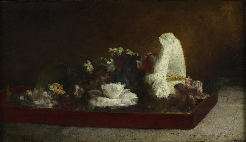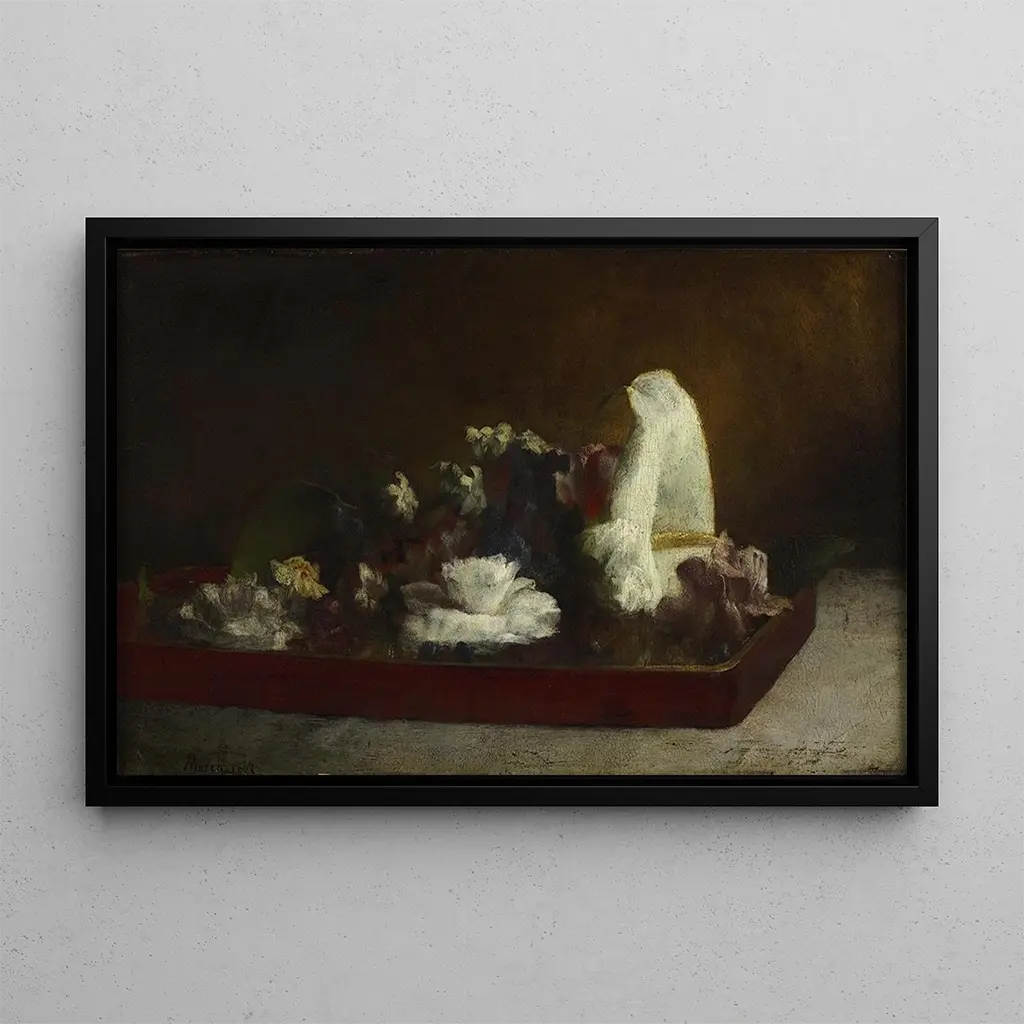 Kunsttrykket "Arum" af John La Farge er en livlig fejring af naturen, hvor blomstens ynde blandes med en palette af rige og nuancerede farver. Kompositionen, centreret omkring den elegante arumblomst, fremkalder en atmosfære af ro og eftertanke. Lys- og skyggelege, samt de omhyggelige detaljer i kronbladene, vidner om kunstnerens tekniske kunnen. Hvert penselstrøg synes at tilføre dette værk en egen livskraft, hvilket inviterer betragteren til at dykke ned i den flygtige skønhed af floraen.