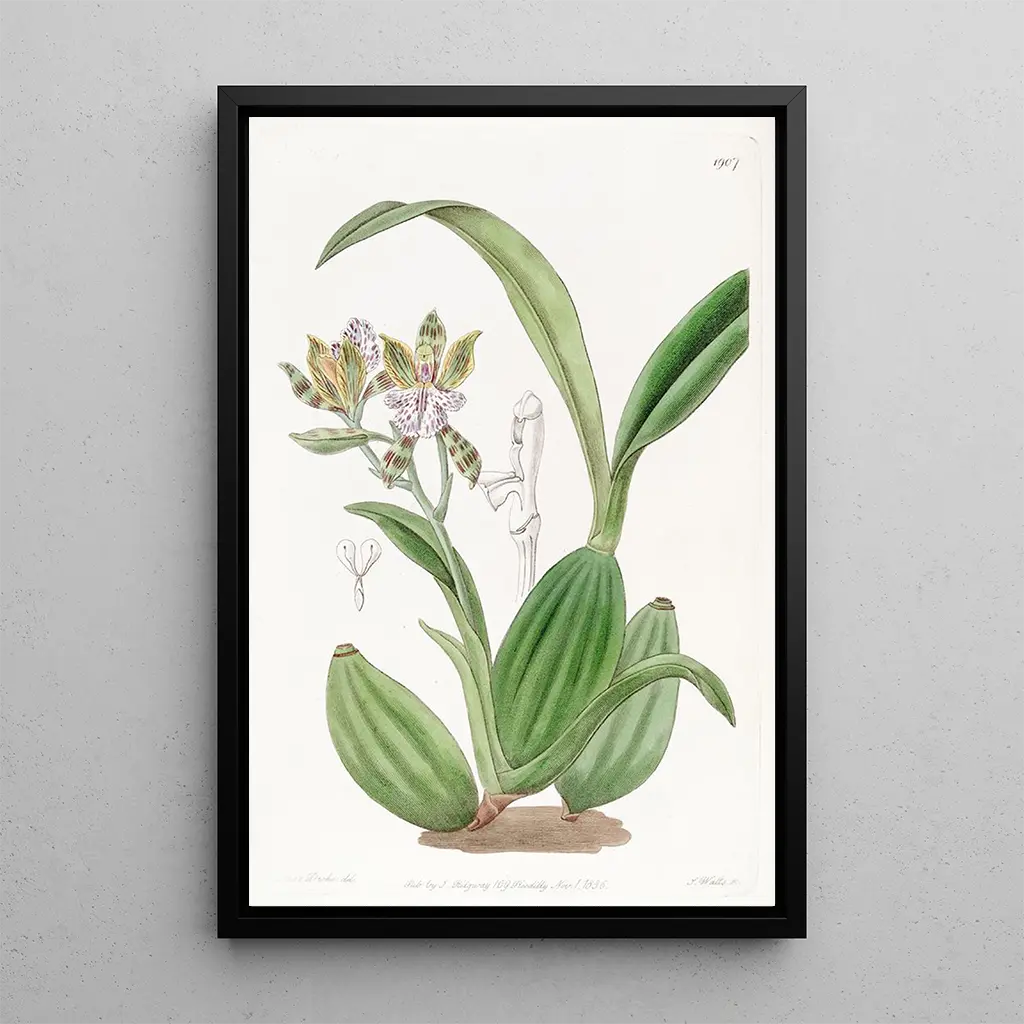 Kunsttrykket "Aspasia panachée" er et ideelt valg til at forskønne dit hjem, uanset om det er i en stue, et kontor eller et soveværelse. Dets trykkvalitet og trofasthed mod de originale farver gør det til et fængslende kunstværk, der tiltrækker opmærksomhed. Ved at integrere dette lærred i din indretning tilføjer du et strejf af friskhed og natur til dit rum, samtidig med at du hylder Sydenham Edwards' kunstneriske arv. Dets æstetiske appel og unikke karakter gør det til en værdifuld tilføjelse til enhver samling af blomsterkunst.