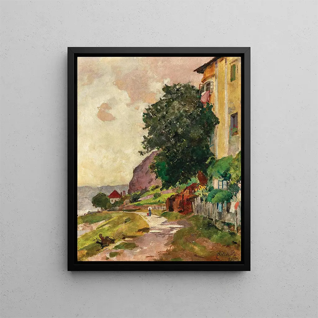 I det store kunsthistoriske panorama skiller visse værker sig ud ved deres evne til at fange essensen af et sted, en æra eller en følelse. "Au Frthof Ramsau - Eduard Zetsche" indskriver sig i denne tradition, og giver et fascinerende indblik i den naturlige skønhed og roen i de alpine landskaber. Dette værk fremkalder ikke blot en malerisk ramme, men inviterer også seeren til en introspektiv eftertanke, til en rejse ind i hjertet af de bayerske Alper, hvor tiden synes at stå stille. Det bløde lys, der bader scenen, de delikate nuancer af grønne og himmelblå farver blander sig for at skabe en næsten drømmeagtig atmosfære, en invitation til dagdrømmeri og indre fred.
