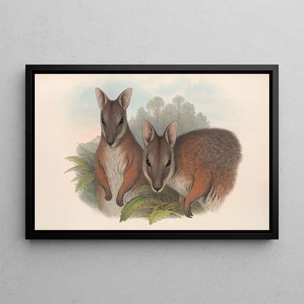 Kunsttrykket af maleriet Les mammifères d'Australie Pl065 er et ideelt dekorativt stykke til at berige dit hjem. Uanset om det er i en stue, et kontor eller et soveværelse, tilføjer dette lærred et strejf af eksotisme og sofistikation. Dets trykkvalitet garanterer en trofast gengivelse af de originale detaljer, hvilket gør det muligt fuldt ud at værdsætte John Goulds talent. Ud over sin æstetiske tiltrækningskraft vækker dette værk nysgerrighed og samtaler, hvilket gør det til et fremragende samtaleemne. At vælge dette kunsttryk er at vælge at integrere en del af den australske natur i din indretning.