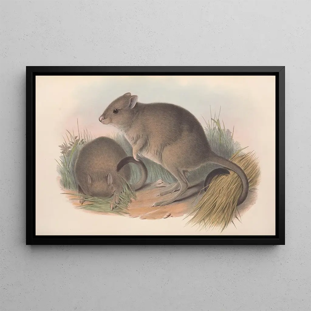 I dette fængslende kunsttryk, Les Mammifères d'Australie Pl097, d. John Gould, dykker vi ned i den australske biodiversitet. De livlige farver og de omhyggelige detaljer i de illustrerede dyr fremkalder en atmosfære, der er både vild og fascinerende. Hvert væsen er gengivet med en præcision, der vidner om kunstnerens omhyggelige observation. Den harmoniske komposition, hvor arterne mødes i en naturlig ramme, inviterer til en refleksion over naturens vidundere. Gould formår at fange essensen af disse mammifère, og hylder deres skønhed og unikke karakter.