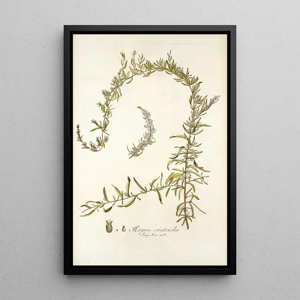 Kunsttrykket af "Axyris ceratoides" er et ideelt valg til at forskønne dit hjem, uanset om det er stue, kontor eller soveværelse. Dets trykkvalitet sikrer en enestående trofasthed over for farver og detaljer i det originale værk, hvilket tilføjer et strejf af elegance og sofistikation til din indretning. Dette kunsttryk inviterer til fordybelse og inspiration, samtidig med at det tilfører et naturligt friskhedselement til dit rum. Med sin æstetiske tiltrækningskraft vil dette kunsttryk appellere til både kunst- og botanikkendere og integreres harmonisk i forskellige indretningstyper.