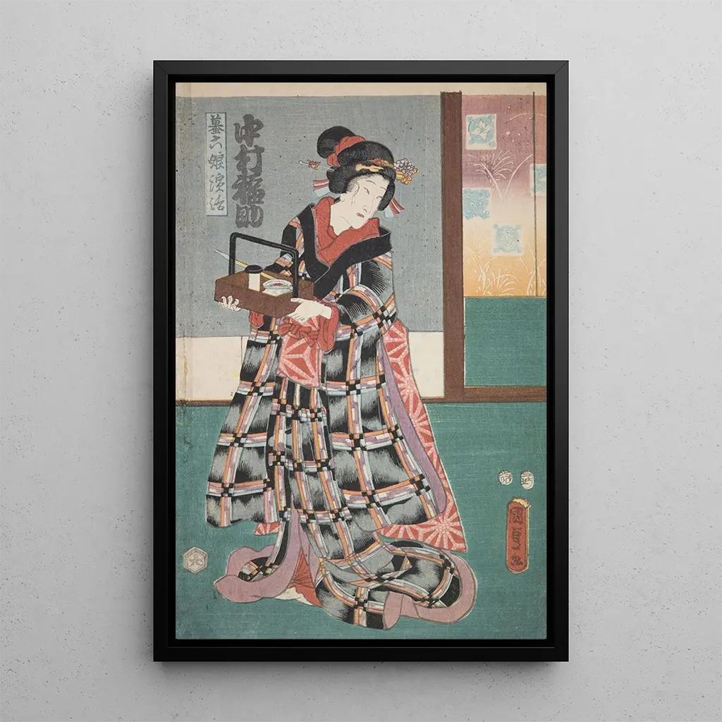 Kunsttrykket Azuma nishikie Pl02 er et fængslende værk, der dykker ned i den rige og farverige verden af japansk ukiyo-e. De livlige nuancer af blå og rød smelter harmonisk sammen og skaber en atmosfære, der er både dynamisk og beroligende. Teknikken ukiyo-e, som betyder "billeder af den flydende verden", fremhæves her og afslører detaljerede motiver og delikate mønstre. Hvert element i kompositionen synes at fortælle en historie, inviterer til eftertanke og til en flugt til et traditionelt Japan, hvor naturen og kulturen mødes.