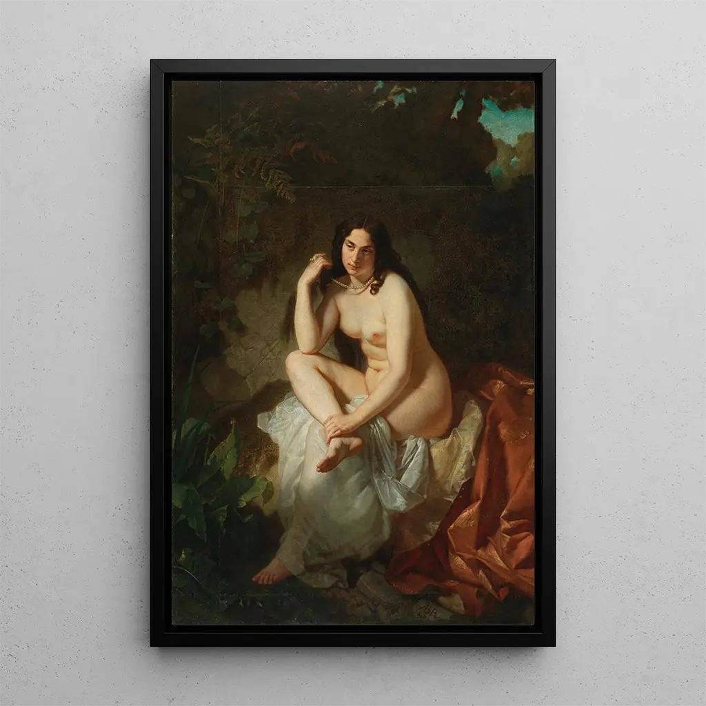 Baigneurs : en hyldest til sommerlig afslapning Kunsttrykket "Baigneurs" tager os med til hjertet af en sommerlig scene fyldt med ro og livsglæde. Dette maleri fremhæver menneskefigurer, der slapper af ved vandkanten, og indfanger essensen af de enkle sommerlige fornøjelser. De levende farver, fra dybblå til lysegrøn, skaber en forfriskende og opkvikkende atmosfære. Teknikken, som kunstneren anvender, der mesterligt blander realisme og impressionisme, giver liv til denne scene, hvor lyset spiller en central rolle og oplyser ansigter og kroppe af badende. Hvert detalje, fra vandstænk til latter, fremkalder en følelse af lykke og frihed. Monogrammaler AB : et kunstnerisk mysterium fra det 17. århundrede Monogrammaler AB, hvis identitet stadig er stort set ukendt, er en kunstner fra det 17. århundrede, hvis værker vidner om stor teknisk kunnen og en særlig følsomhed. Aktiv i en periode, hvor barokken dominerede den europæiske kunst, har denne kunstner formået at fange dagligdagens øjeblikke med en unik tilgang. Indflydelser fra flamandsk og italiensk maleri kan mærkes i hans kompositioner, hvor lys og skygge spiller en afgørende rolle. Selvom der er få oplysninger om hans biografi, fortsætter hans værker, som "Baigneurs", med at fascinere kunstelskere og vidner om en rig periode præget af kreativitet og innovation. En dekorativ genstand med mange fordele At vælge kunsttrykket af "Baigneurs" er et klogt valg for at berige din indretning. Uanset om det er i et opholdsrum, et kontor eller et soveværelse, tilføjer dette lærred et strejf af friskhed og lethed til dit miljø. Dets trykkvalitet sikrer en perfekt gengivelse af nuancer og detaljer i det originale værk, samtidig med at det har en tydelig æstetisk appel. Ved at integrere dette kunsttryk i din indretning skaber du et indbydende og inspirerende rum, hvor hvert blik på denne sommerlige scene vækker minder om afslapning og glæde ved vandkanten.