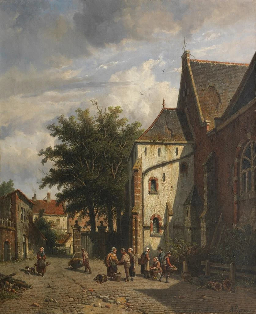 Kunsttryk | Bag den vestlige kirke i Enkhuizen - Adrianus Eversen