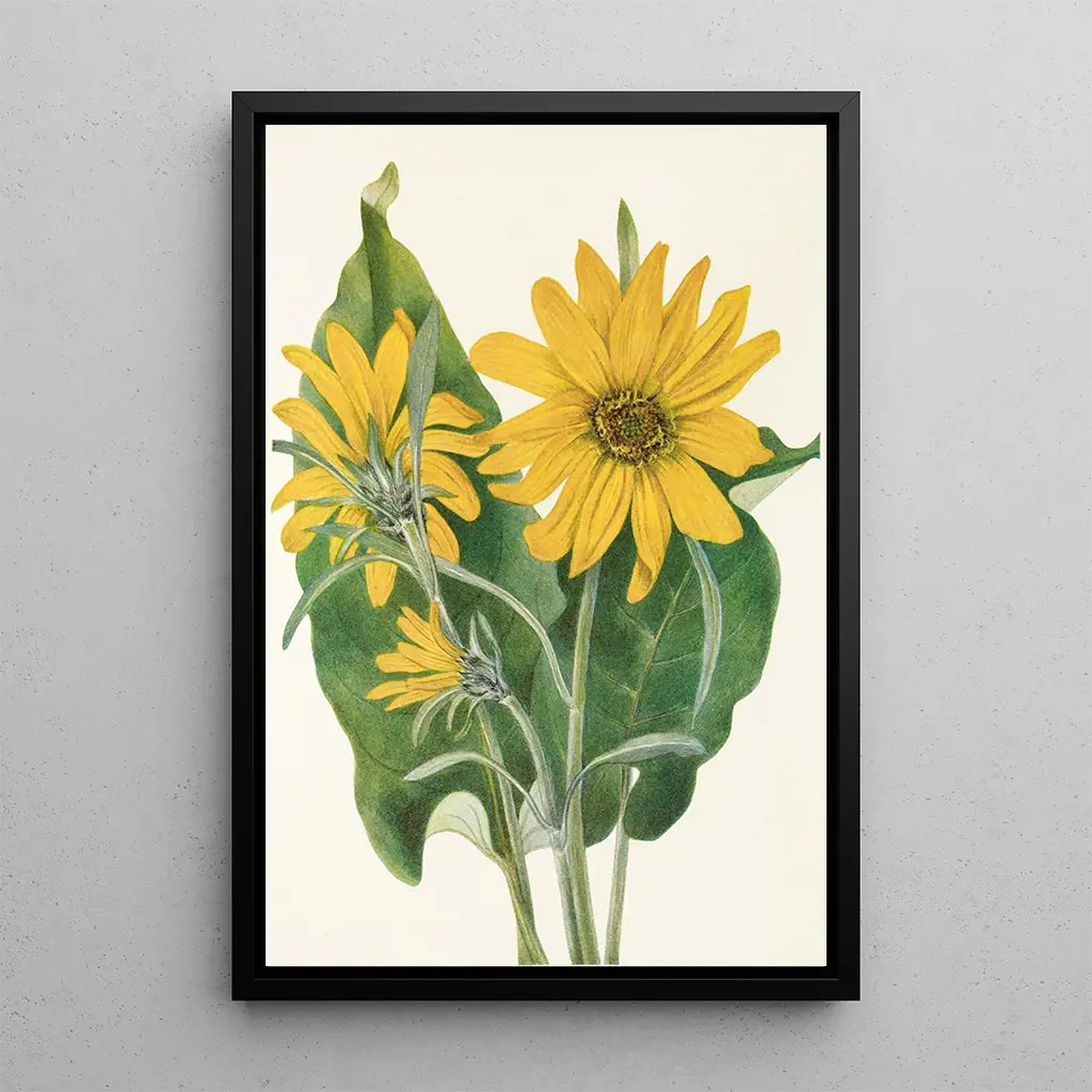 Kunsttrykket af kunstværket Balsamorhize sagittée Balsamorhiza sagittata er en perfekt tilføjelse til din indretning, uanset om det er i et arbejdsrum, en stue eller et soveværelse. Det høje trykkvalitet sikrer en trofast gengivelse af de livlige farver og de præcise detaljer i det originale værk. Dette lærred tilføjer et strejf af friskhed og dynamik til dit miljø, samtidig med at det fejrer skønheden i den vilde flora. Forvandl dit rum med dette dekorative stykke, der kombinerer kunst og natur, og lad dig inspirere af livets planteverden.