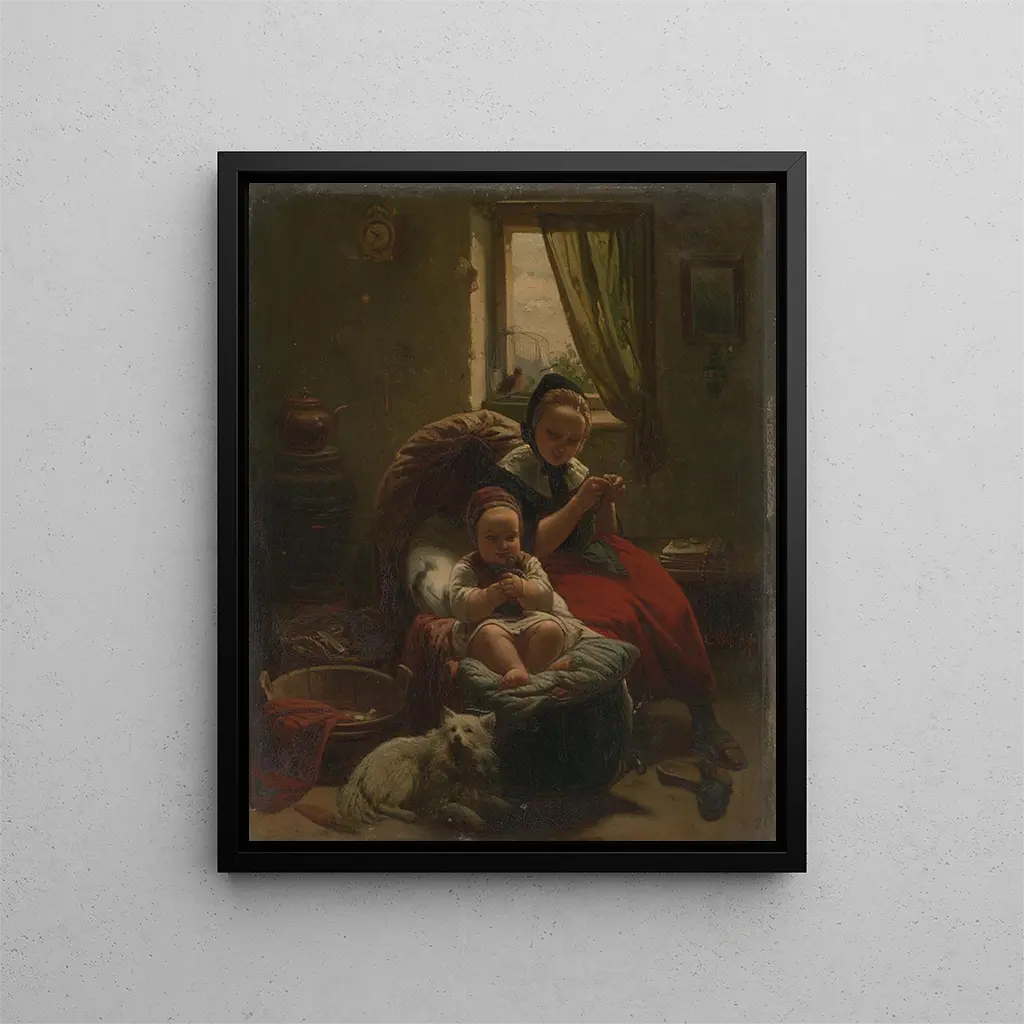 L'œuvre "Enfant i vuggen" af Eduard Geselschap er en invitation til at dykke ned i en verden fyldt med varme og blidhed. Dette maleri, der skildrer et intimt øjeblik mellem en spædbarn og dets omgivelser, vækker følelser af ro og beskyttelse. Geselschap formår gennem dette værk at fange selve essensen af barndommen, det flygtige øjeblik, hvor uskyld og forundring mødes. Lyset, der bader scenen, de omhyggelige detaljer i vuggen og den fredelige udtryk hos barnet er alle elementer, der transporterer betragteren til en verden, hvor tiden synes at stå stille. Kunstværket begrænser sig ikke til blot at skildre en simpel husholdningsscene, det bliver en refleksion over moderskab, sårbarhed og skønheden i de første øjeblikke af livet.