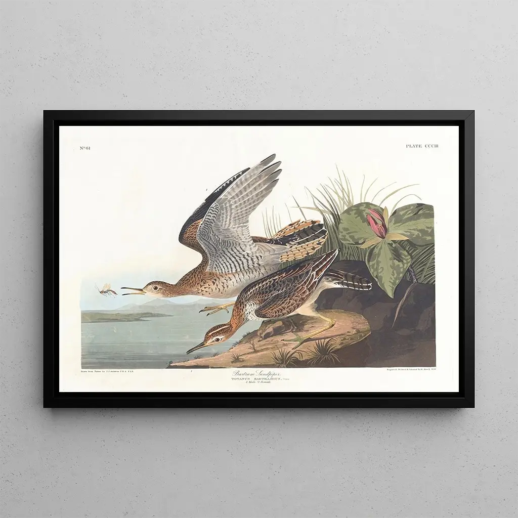 Kunsttrykket af maleriet "Bécasseau de Bartram" af John James Audubon viser en smuk fugl i fuld flugt, der indfanger essensen af den vilde natur. De omhyggelige detaljer i fjerdragten, kombineret med livlige og naturlige farver, skaber et billede, der er både realistisk og poetisk. Audubon, berømt for sin videnskabelige og kunstneriske tilgang, formår at formidle denne fugls ynde og elegance. Stemningen i scenen fremkalder en følelse af frihed og skønhed, og inviterer betragteren til at værdsætte den rige fuglefauna.