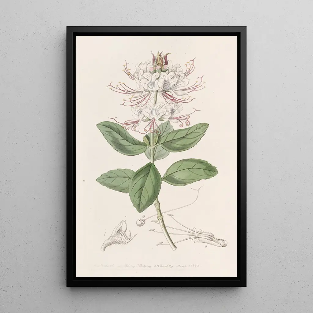Becium bicolore : en delikat harmoni af farver Kunsttrykket af Becium bicolore, udført af Sydenham Edwards, tager os med ind i en botanisk verden, hvor naturen udtrykker sig med glans. De livlige nuancer i dette maleri, svingende mellem det lyse gule og det dybe lilla, skaber en glad og beroligende atmosfære. Akvarelteknikken, anvendt med finesse, gør det muligt at fange subtiliteterne i kronblade og blade, mens lyset leger med. Hvert detalje er omhyggeligt gengivet, hvilket inviterer betragteren til at forundres over denne plantes flygtige skønhed. Dette værk er en sand hyldest til naturen, der fejrer den blomstrende mangfoldighed med en visuel poesi. Sydenham Edwards : en pioner inden for botanisk illustration Sydenham Edwards, aktiv i begyndelsen af det 19. århundrede, er anerkendt som en af de første botaniske illustratører i sin tid. Påvirket af den romantiske bevægelse, formåede han at forene videnskabelig præcision med kunstnerisk følsomhed i sine værker. Hans illustrationer, ofte offentliggjort i referenceværker, har bidraget til viden om eksotiske planter og deres klassificering. Edwards rejste rundt i verden, inspireret af den varierede flora, han mødte, og efterlod sig en varig arv inden for botanisk illustration. Hans arbejde, i skæringspunktet mellem kunst og videnskab, forbliver en reference for botanik- og kunstentusiaster. En dekorativ tilføjelse med mange fordele Kunsttrykket af Becium bicolore er et dekorativt stykke, der vil pryde forskellige rum i dit hjem, uanset om det er i en stue, et kontor eller et soveværelse. Det farverige palette tilføjer et strejf af friskhed og vitalitet til enhver indretning. Desuden garanterer kvaliteten af kunsttrykket en bemærkelsesværdig trofasthed til det originale værk, hvilket gør det muligt at nyde skønheden af dette botaniske illustration uden kompromis. Med sin ubestridelige æstetiske tiltrækningskraft bliver dette lærred et centralt element i din indretning, der vækker beundring og nysgerrighed hos dine gæster.